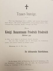 | 10:27, 26. Jan. 2021 | Traueranzeige Fried. Friedreich.jpeg (Datei) | 471 KB | {{Bild}}Traueranzeige für Friedrich Friedreich | 1 | |