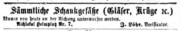 | 21:56, 25. Mär. 2022 | Schankgefäße FÜ-Tagblatt 1872.png (Datei) | 84 KB | {{Bild}}Mitteilung über die Eichung von Schankgefäßen, Januar 1872 | 1 | |