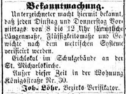| 18:15, 2. Mär. 2022 | Nachlasssache B. Löhr 2.png (Datei) | 563 KB | {{Bild}}Bekanntgabe des Liquidationstermins für Nachlasssache der Maurermeisterswitwe Barbara Löhr | 1 | |