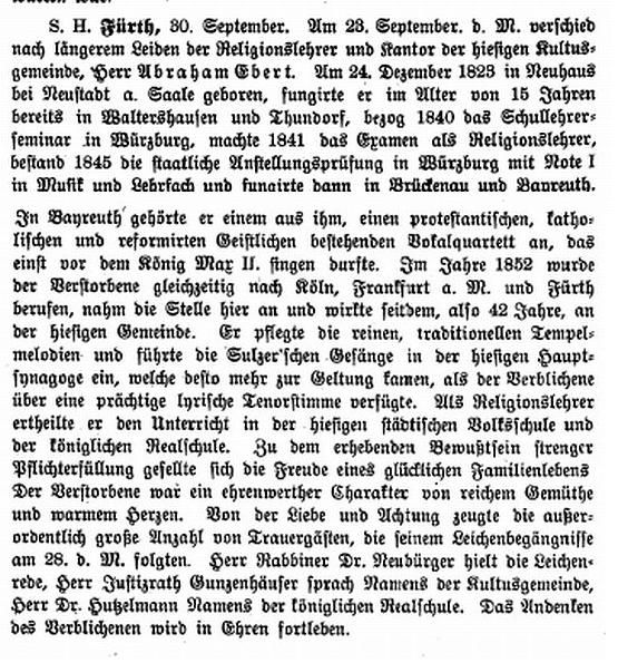 | 16:33, 17. Mai 2023 | Nachruf Abraham Ebert, Allgemeinen Zeitung des Judentums, 5. Oktober 1894.jpg (Datei) | 115 KB | Chrischmi | {{Bild}} | 1 | |