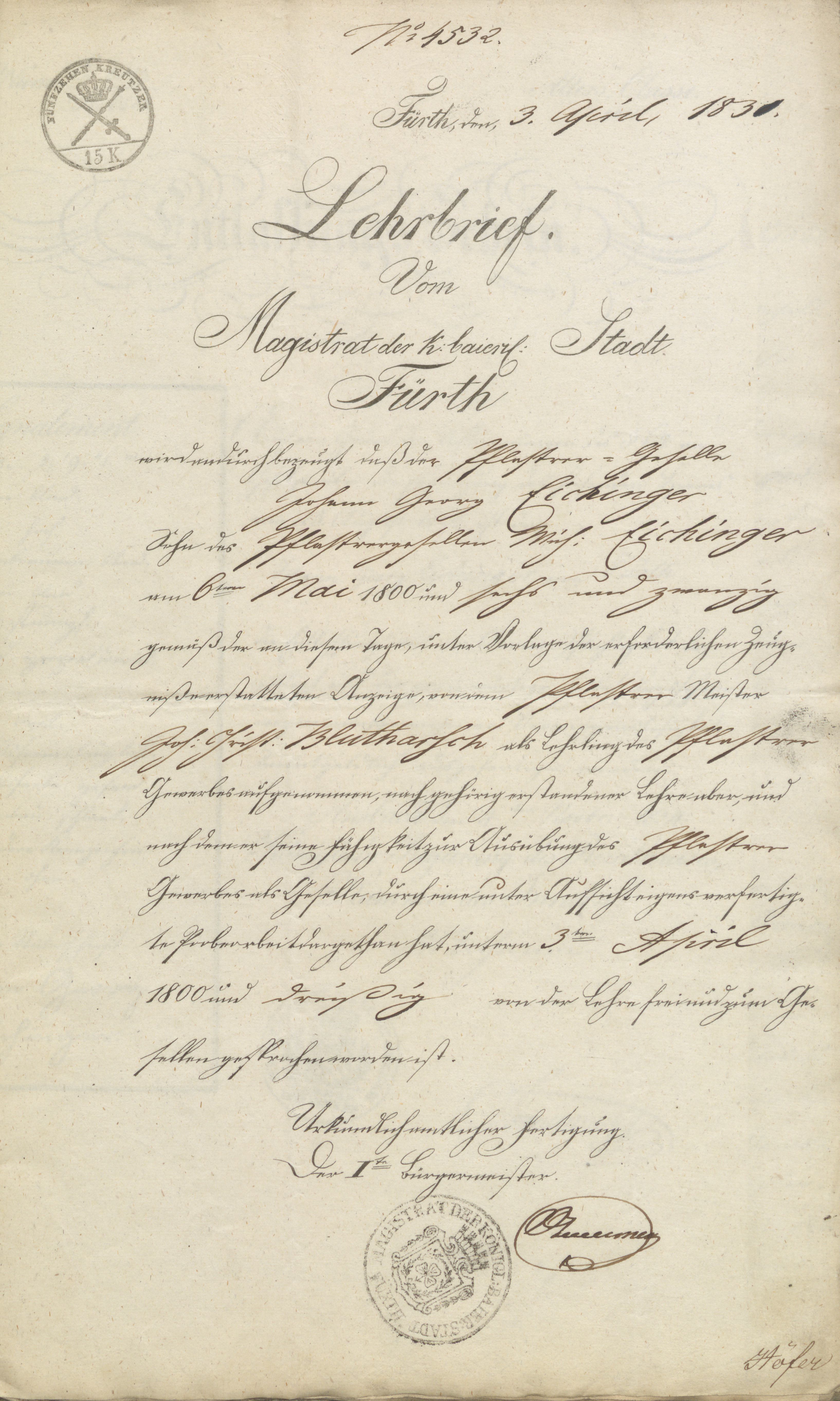 | 16:13, 14. Okt. 2024 | Fach 18a-B 416 1.jpg (Datei) | 2,14 MB | {{Bild}}Zeugnis für Bautechniker Carl Böhm von Maurermeister Leonhard Gran, 1865; Veröffentlichungsgenehmigung Stadtarchiv Fürth vom 09.10.2024 | 1 | |