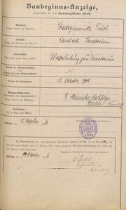 | 18:22, 10. Jul. 2024 | AR 12 35 Baubeginnanzeige.jpg (Datei) | 2,44 MB | {{Bild}}Baubeginnanzeige vom 12. Oktober 1906; Veröffentlichungsgenehmigung Stadtarchiv Fürth vom 27.06.2024 | 1 | |
