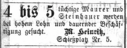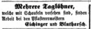 | 12:47, 9. Nov. 2024 | 1870-04-29 Fränk.Kurier Pflasterer.png (Datei) | 206 KB | {{Bild}}Anwerbung von Pflasterergesellen für Blutharsch & Eichinger, April 1870 | 1 | |