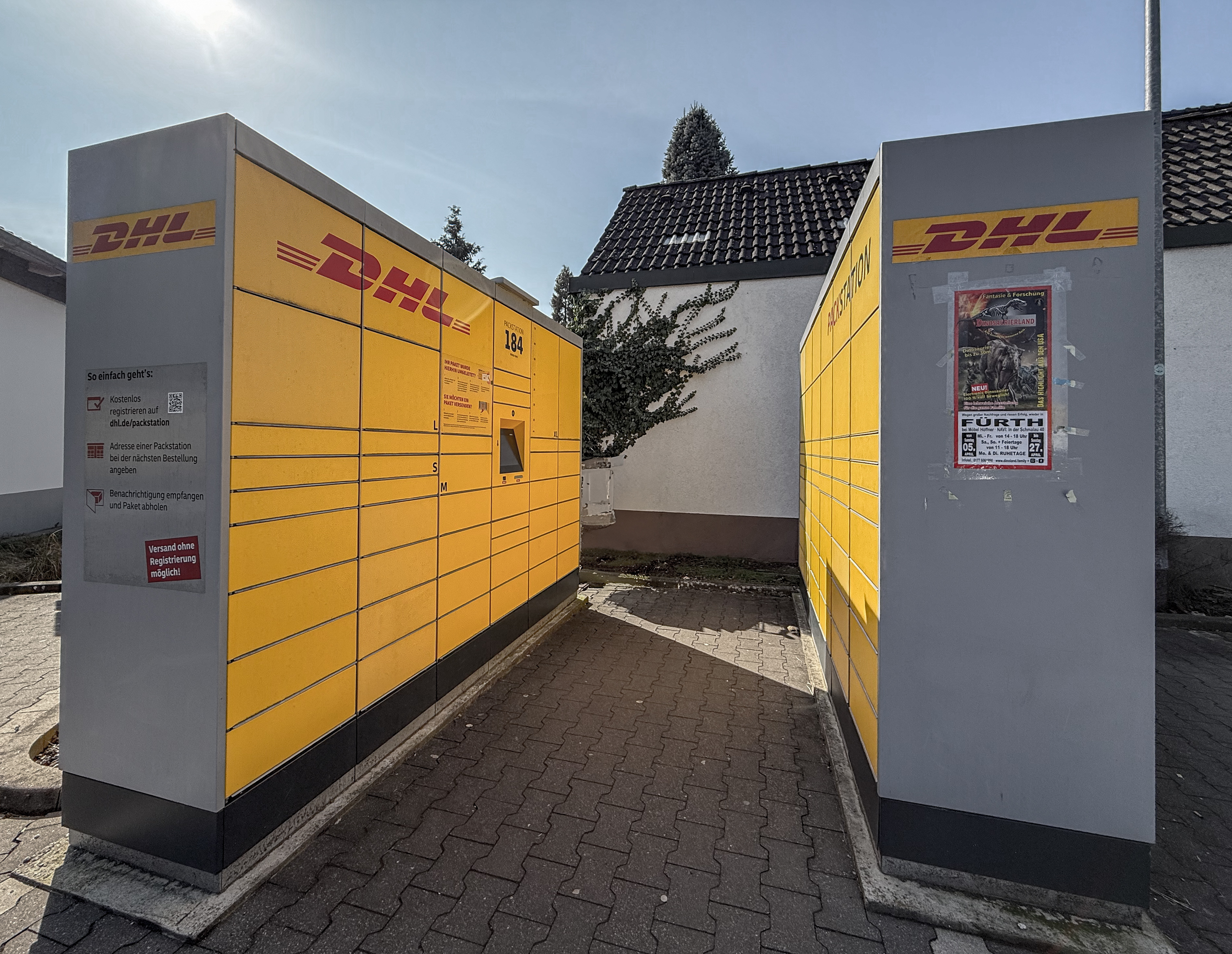 | 18:09, 8. Mär. 2025 | DHL Packstation 141, Erlanger Str. 200, 90765 Fürth.jpg (Datei) | 8,64 MB | Hochgeladen mit SimpleBatchUpload | 1 | |