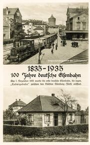 AK Erste Eisenbahnfahrt 1835 gel 19 Aprl 1919.jpg