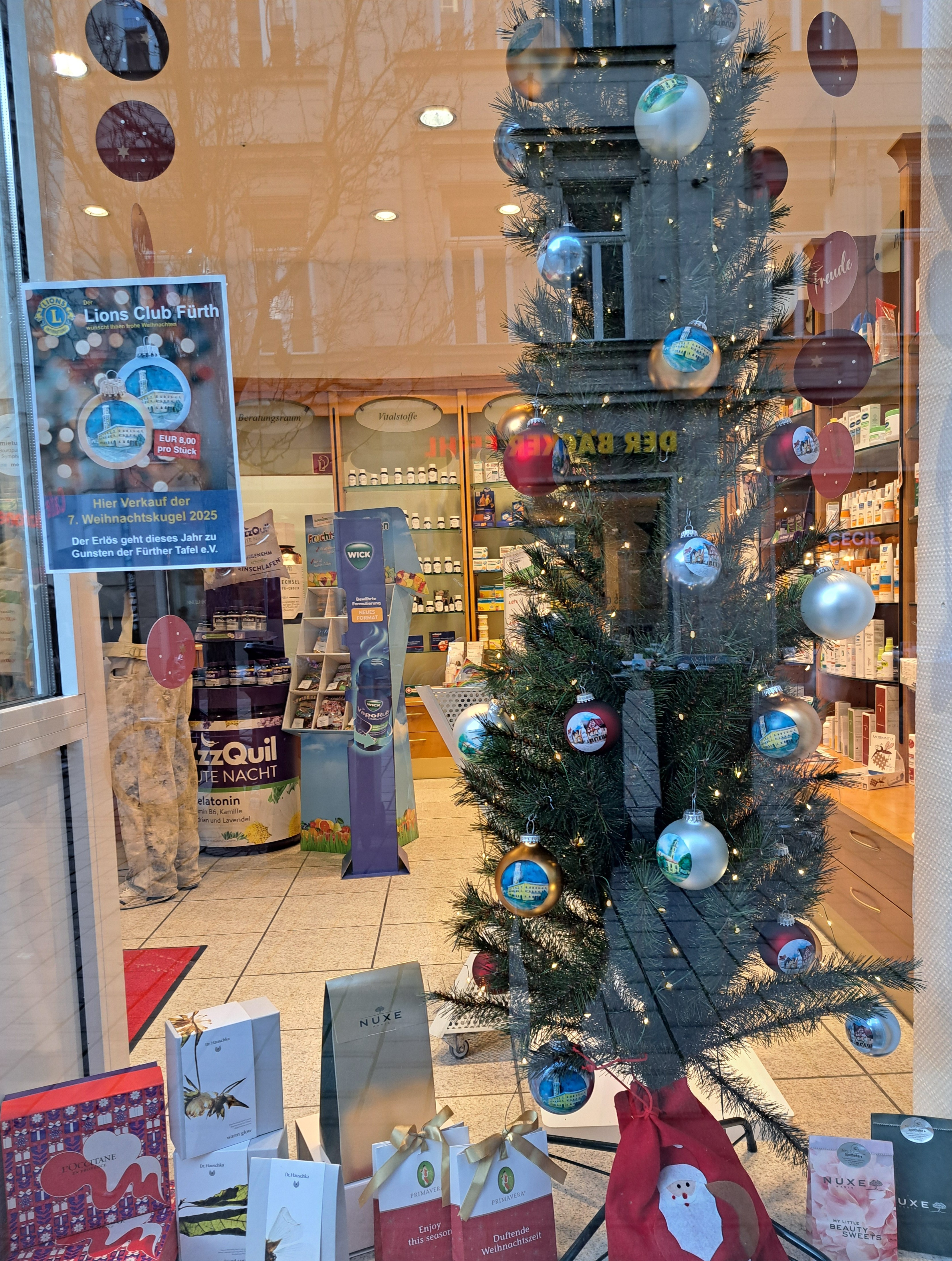 | 14:18, 20. Dez. 2025 | Schaufenster der Hirsch-Apotheke mit Weihnachtskugeln des Lions Club Fürth.jpg (Datei) | 3,26 MB | Fürther Fuchur | Hochgeladen mit SimpleBatchUpload | 1 | |
