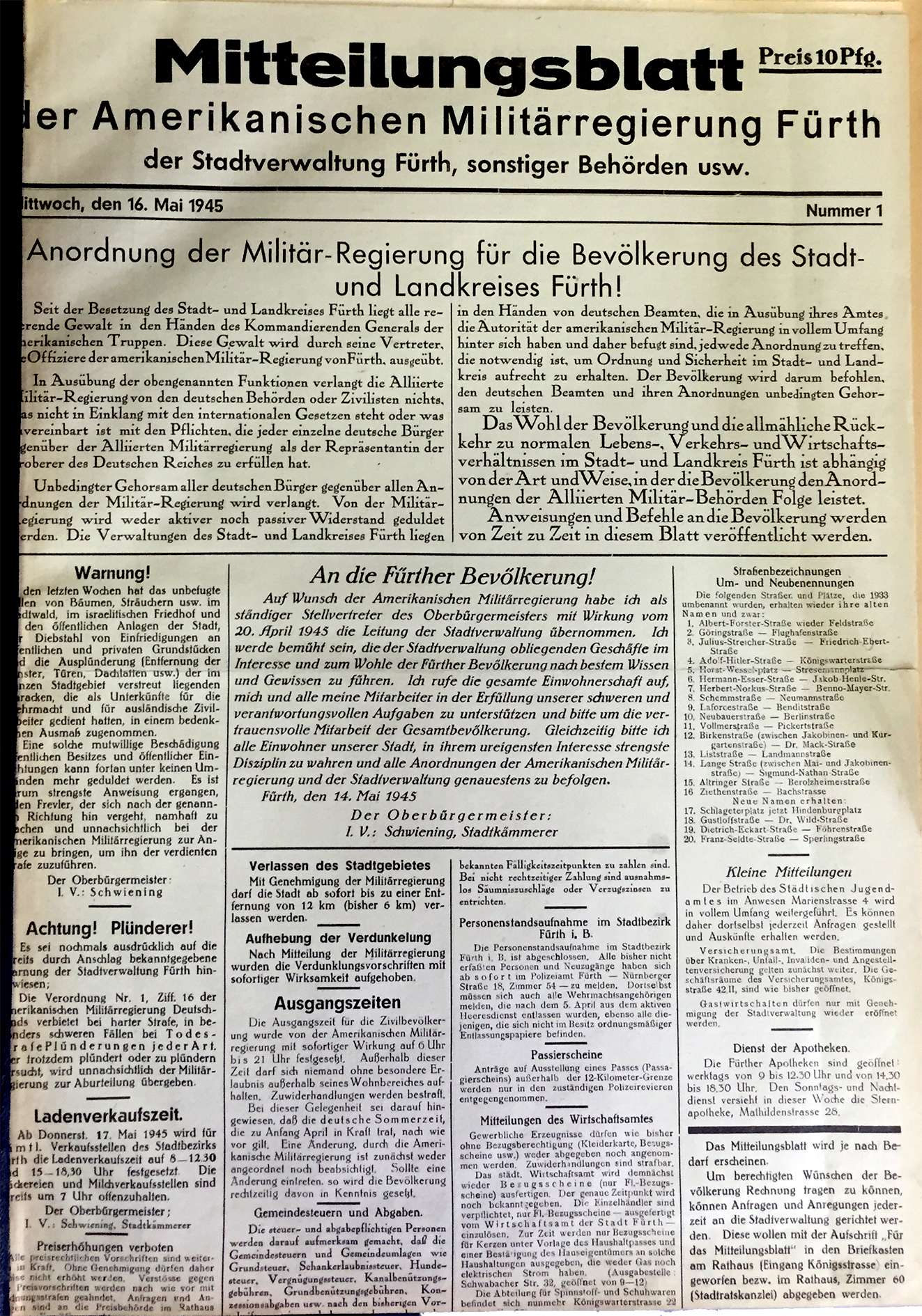 | Datei:US Militärregierung Mitteilungen 1 Ausgabe Mai 1945.jpg | |||