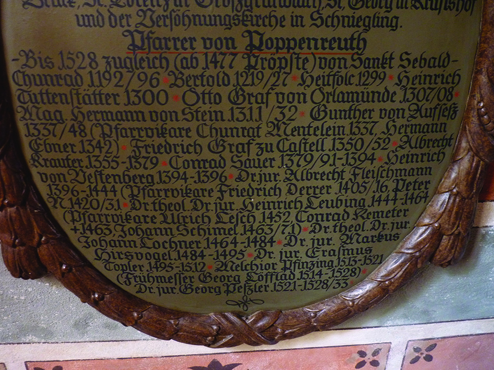 BeschreibungPfarrertafel mit vorreformatorischen Stelleninhabern in Poppenreuth