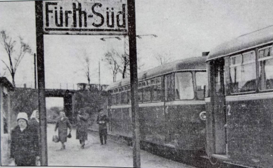 Siehe auch Hilfe-Seite Grundregeln zur Artikel-Gestaltung, Abschnitt Bilddarstellung der ehem. Haltepunkt "Fürth-Süd" der Bibertbahn mit Schienenbus im März 1961. Im Hintergrund die Straßenbrücke der Gebersdorfer Straße nach der Kreuzung Fürth-Süd.
