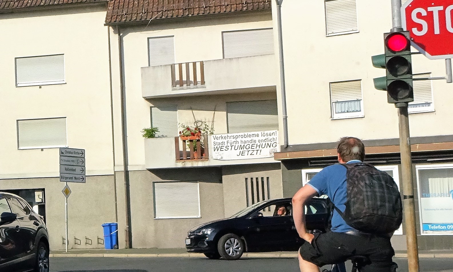 BeschreibungProtest Plakat wegen der längst überfälligen Westumgehung an der Stadelner Kreuzung Fischerberg - Stadelner Hauptstraße im Juni 2022