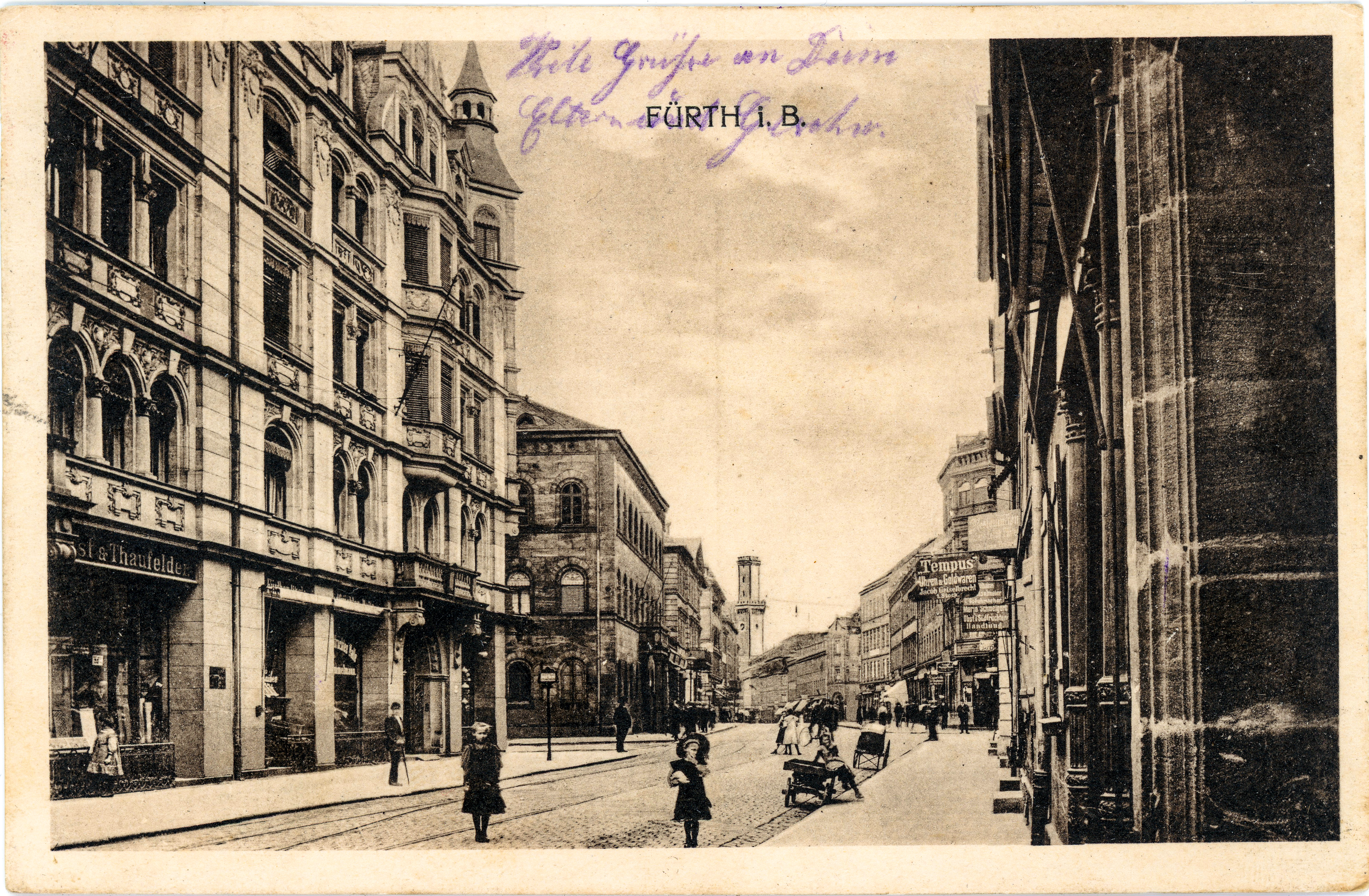 BeschreibungBlick in die Schwabacher Straße, gel. 1920