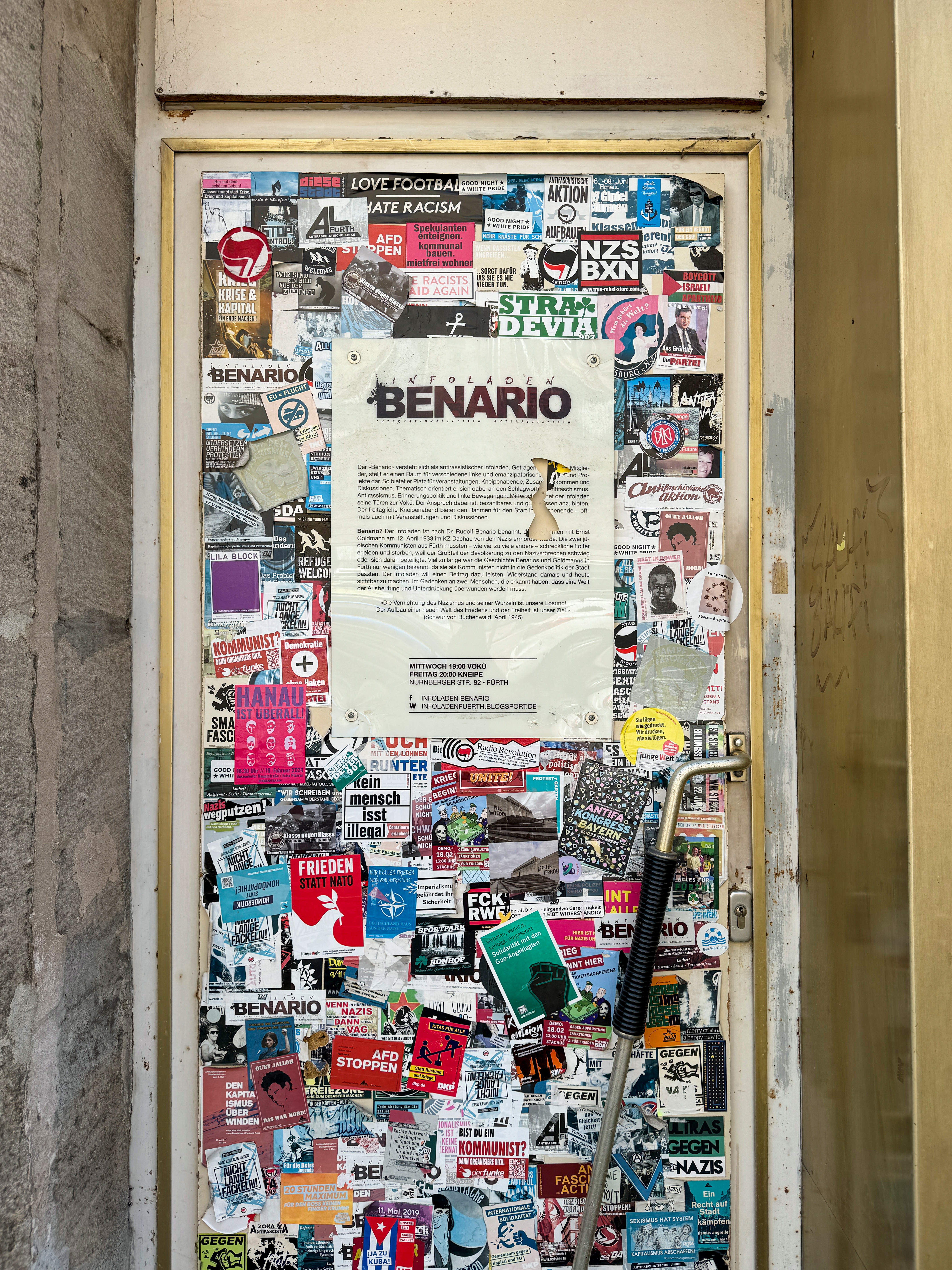 | Beschreibung | Eingangstür zum ehem. Infoladen Benario, Juli 2024 | ||