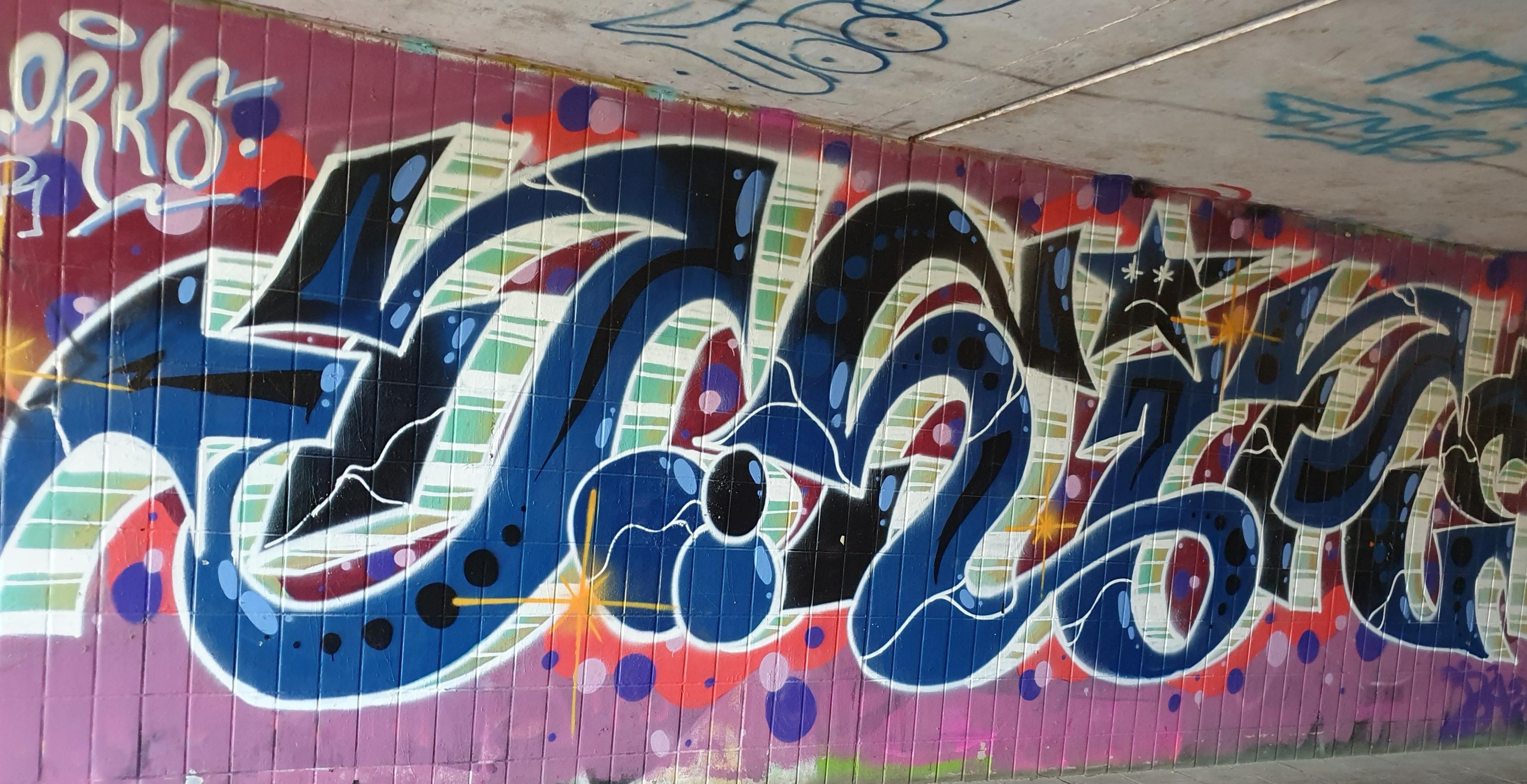 | Beschreibung | Graffiti 4, Mai 2024 Unterführung Heiligenstraße | ||