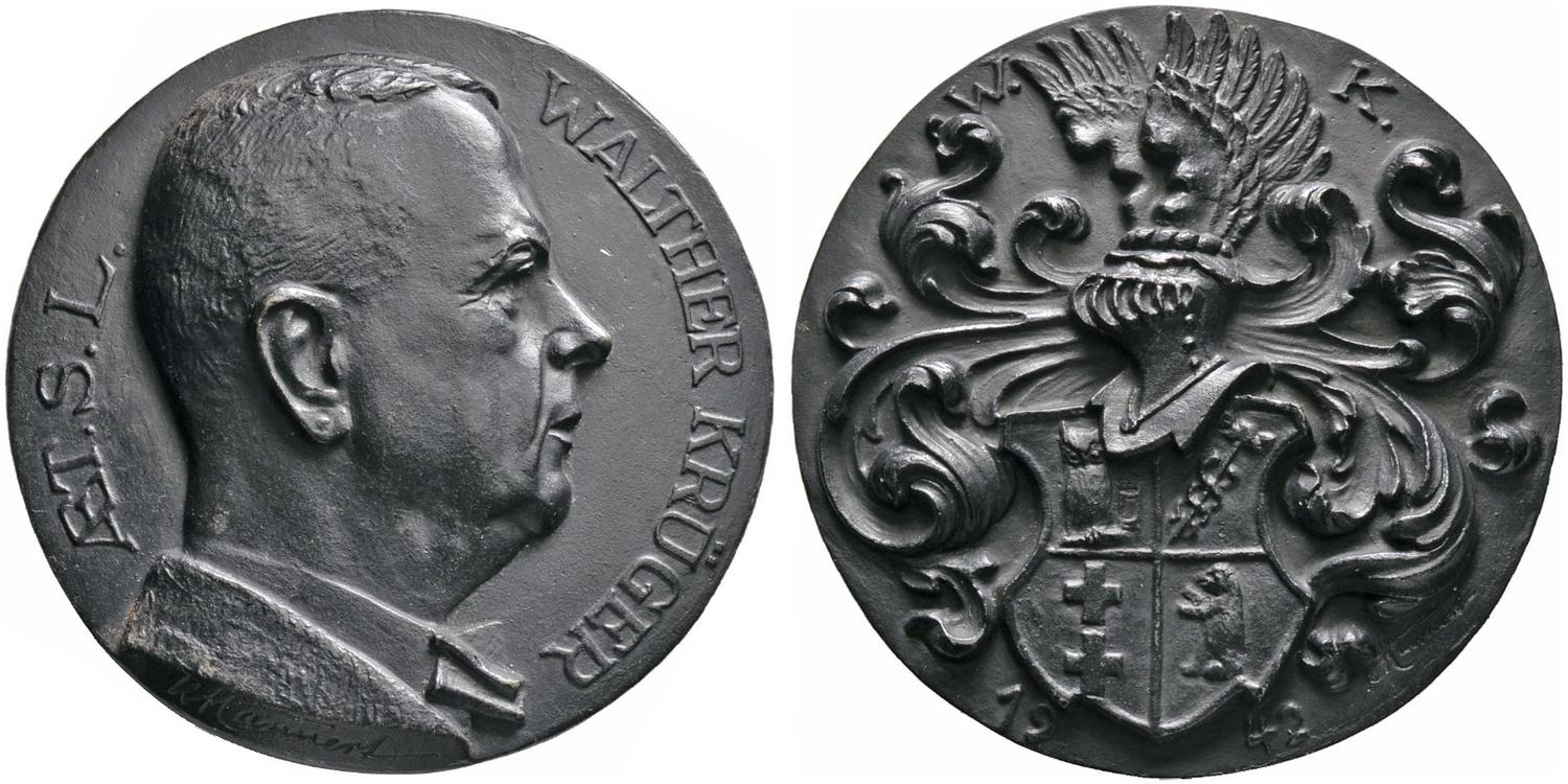 BeschreibungWalther Krüger zum 50. Geburtstag, Eisengussmedaille von Konrad Mannert, 1942