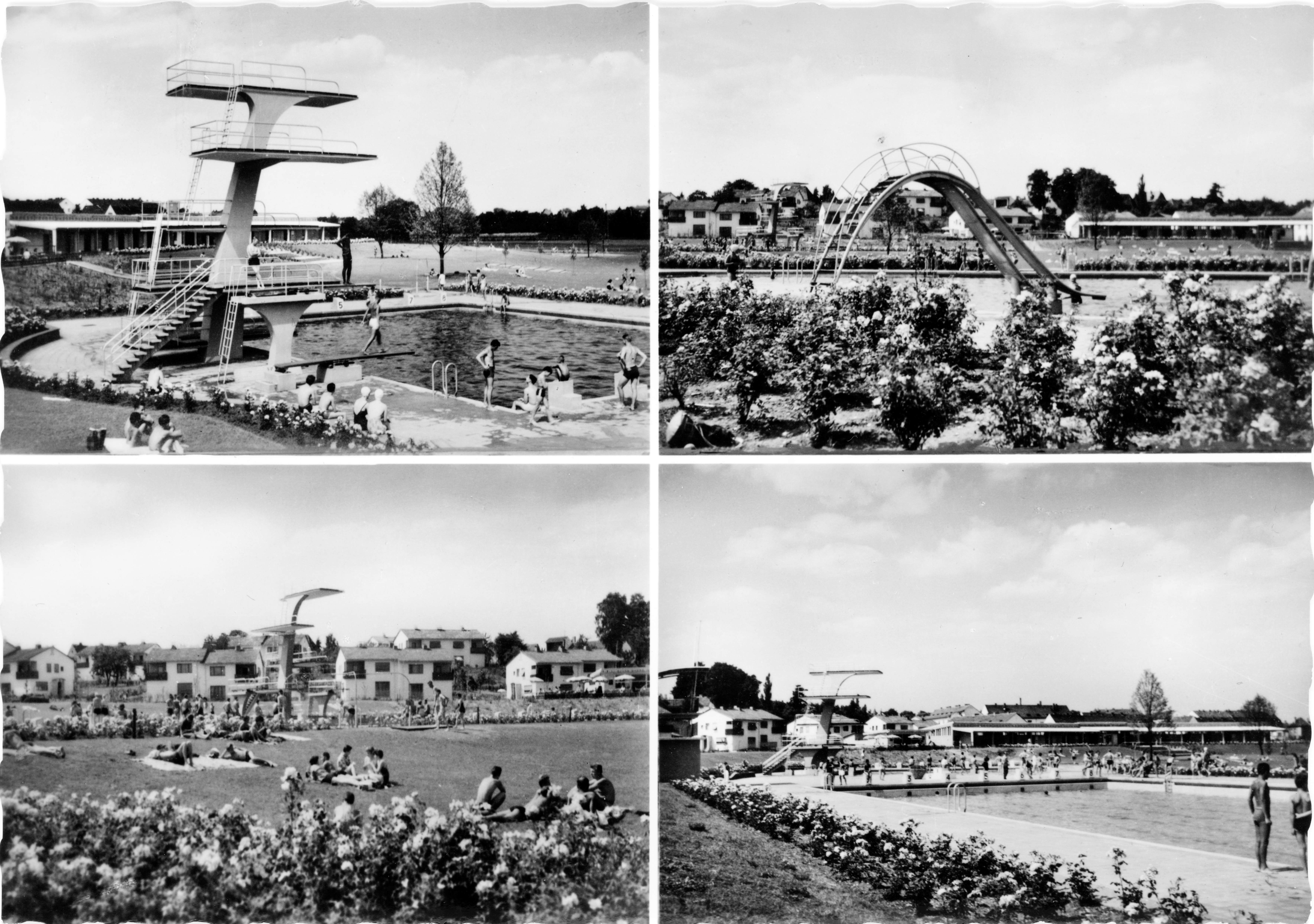 BeschreibungAnsichtskarte mit dem Freibad und dem Sprungturm, ca. 1960