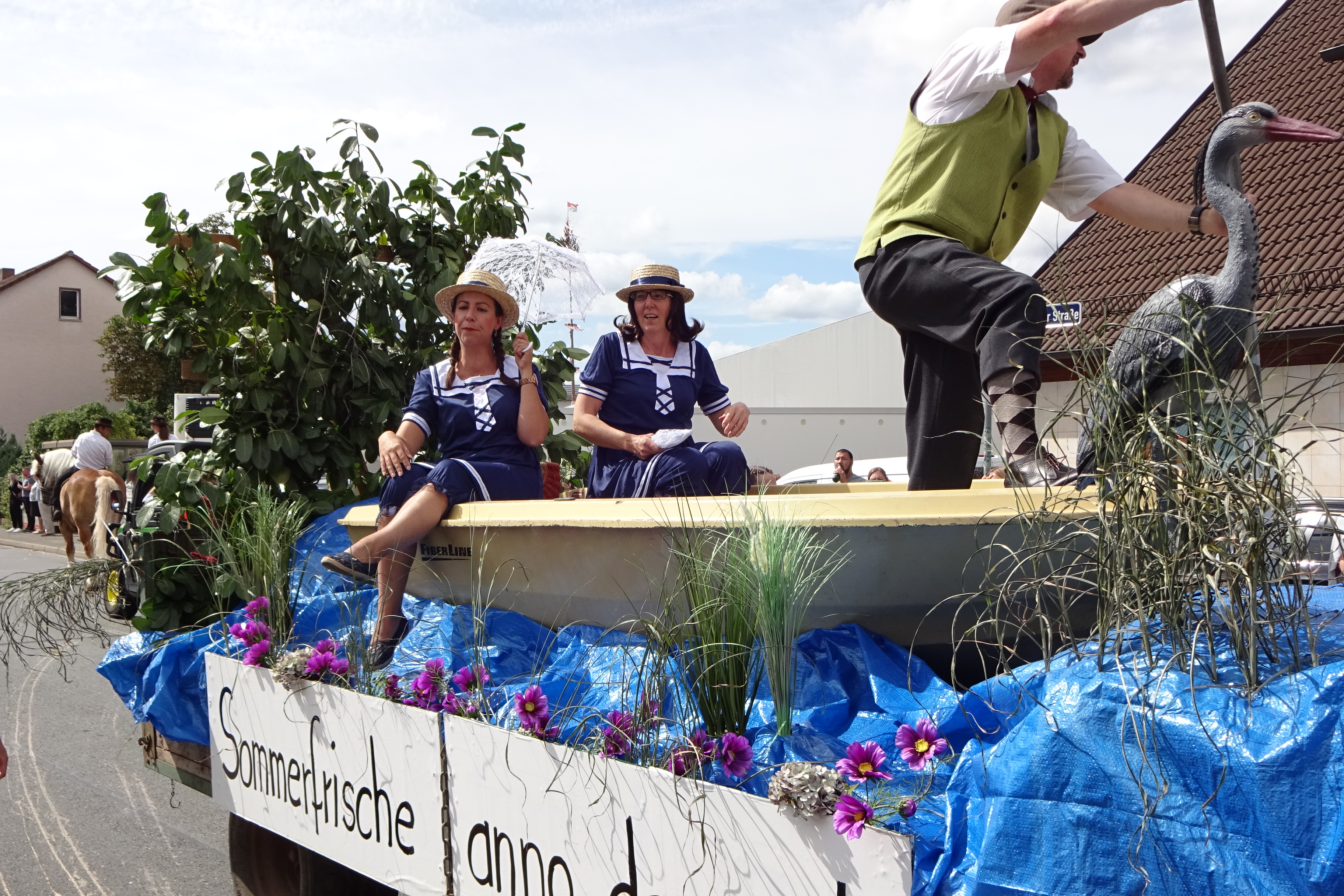 BeschreibungFestwagen mit Badenixen vom Stadelner Bauerntheater beim Stadelner Kärwazug, August 2024