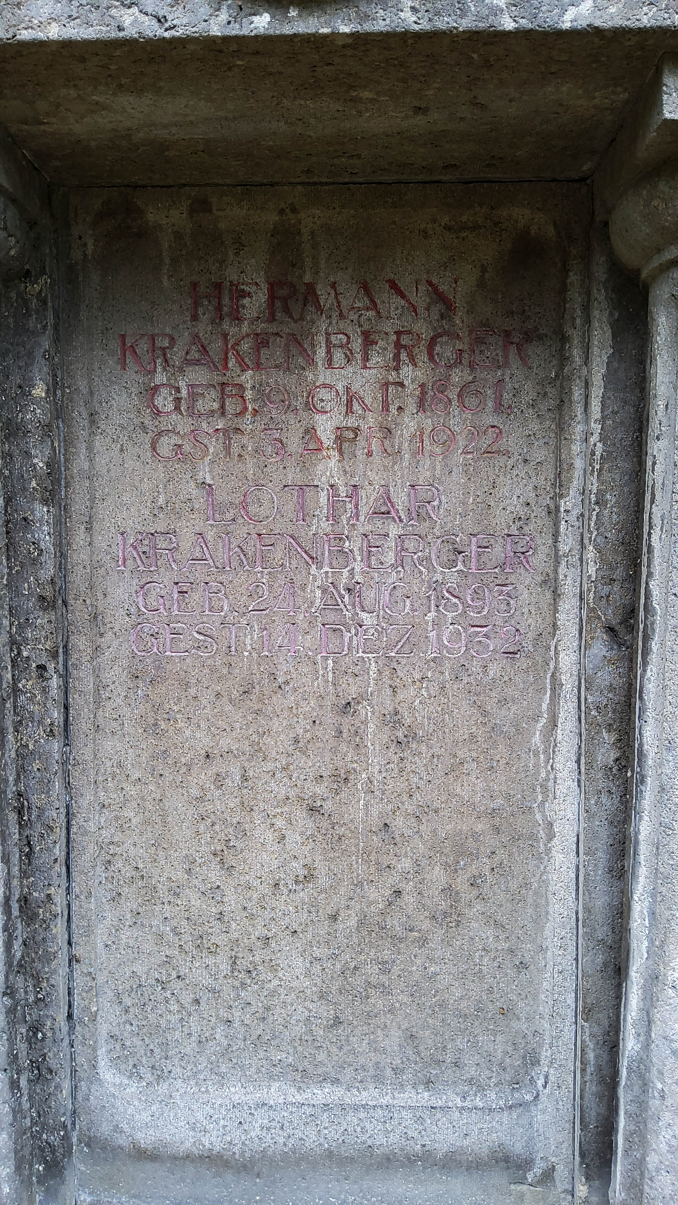 | Datei:Grabsteinbeschriftung Hermann und Lothar Krakenberger.jpg | |||