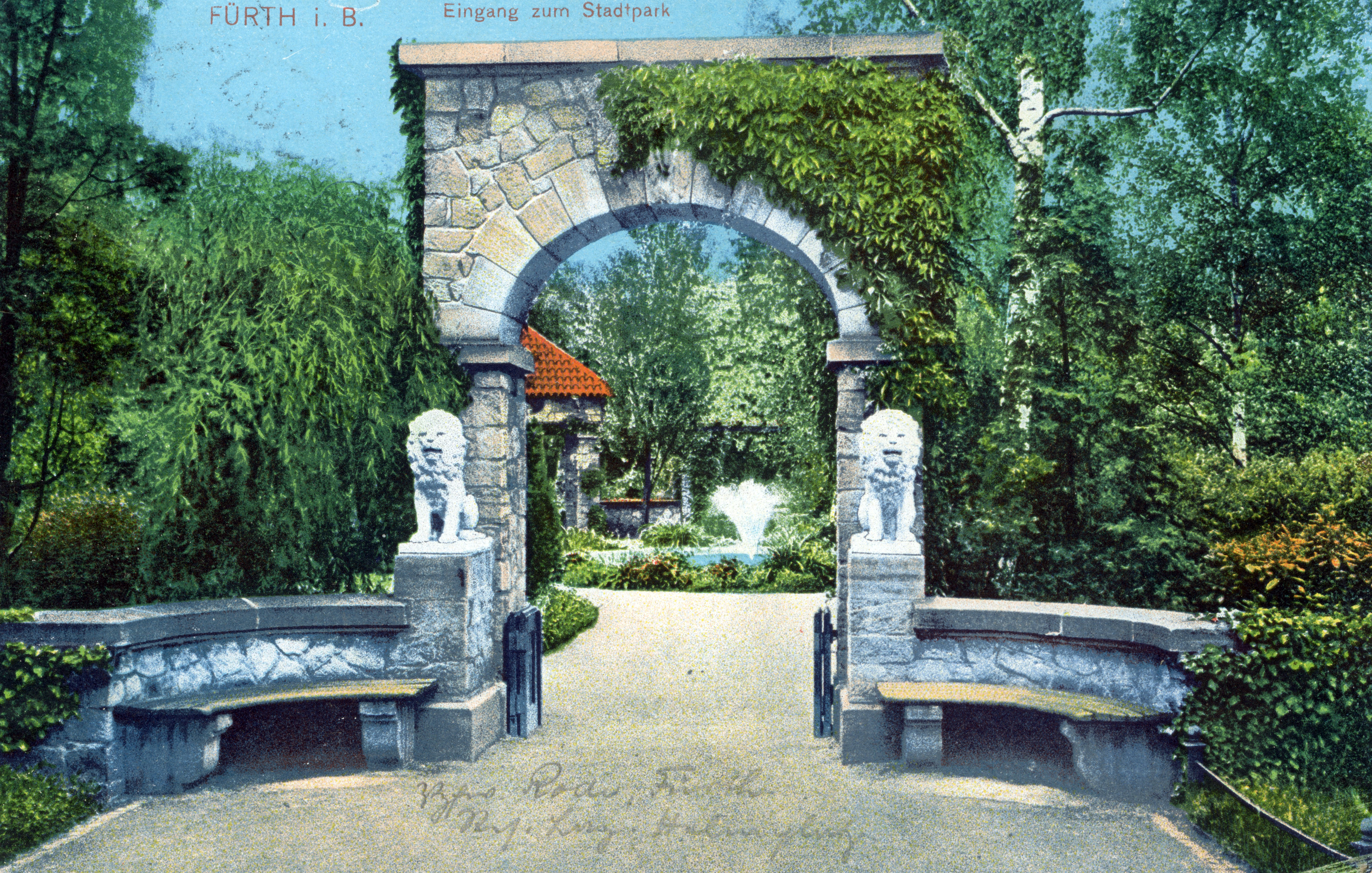 | Beschreibung | Das Löwentor im Stadtpark, gel. Aug 1916 | ||
