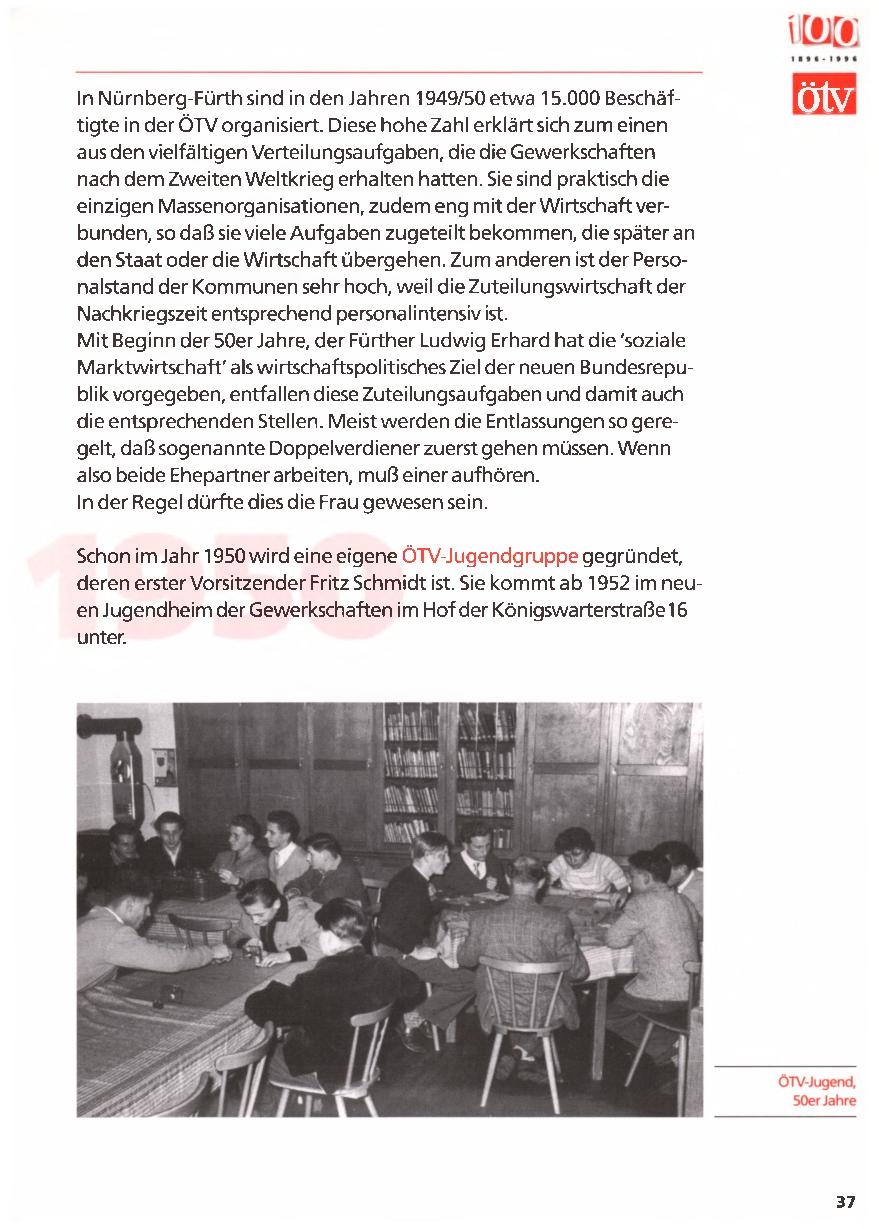 Schon im Jahr 1950 wird eine eigene ÖTV-Jugendgruppe gegründet, deren erster Vorsitzender Fritz Schmidt ist. Sie kommt ab 1952 im neuen Jugendheim der Gewerkschaften im Hof der Königswarterstraßei 6 unter.