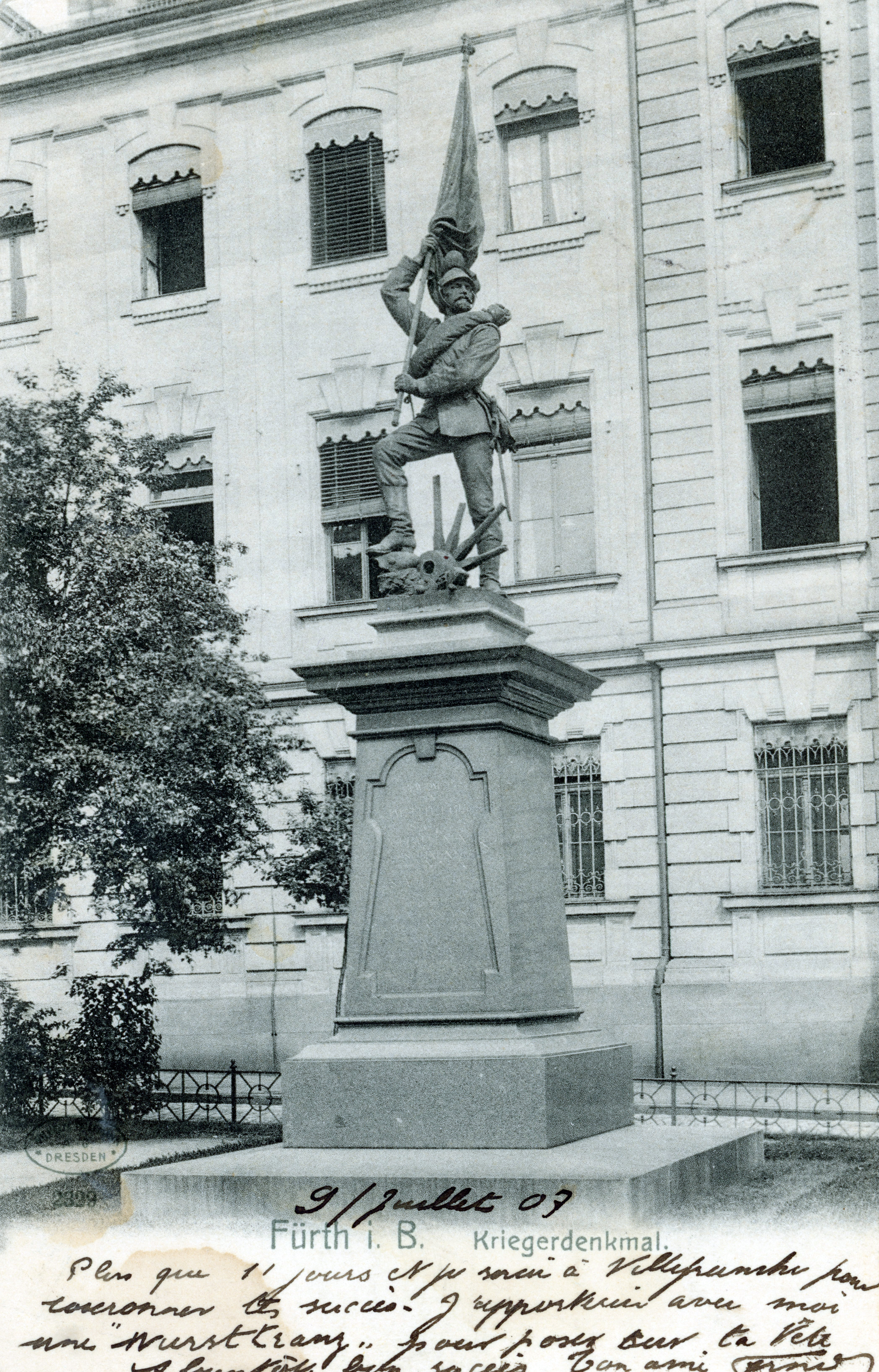 | Beschreibung | Das Kriegerdenkmal von 1870/71 vor dem Amtsgericht, gel. Juli 1907 | ||