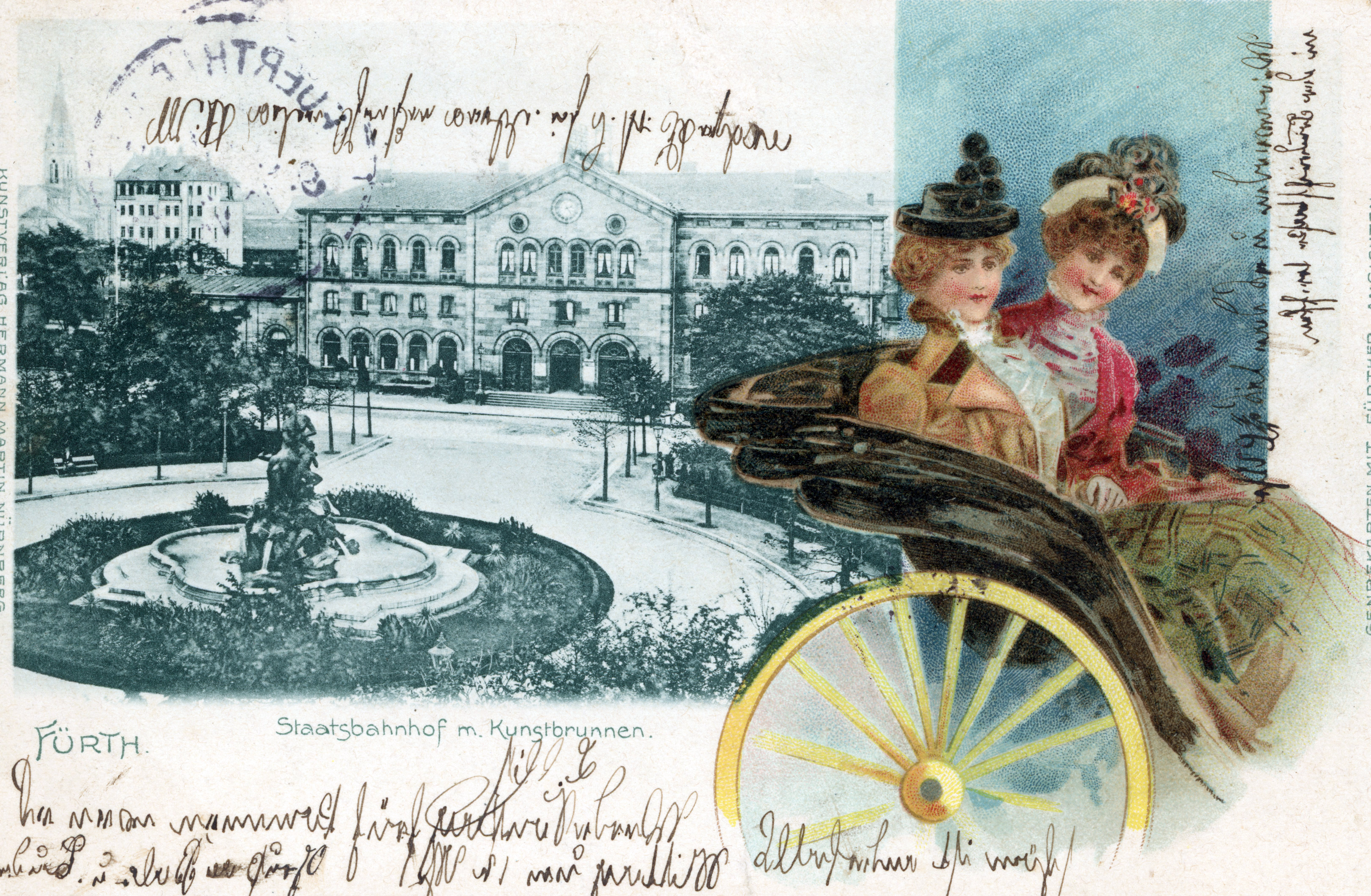 | Dateiinfo (Bild-Unterschrift und Info-Box, automatisch erstellt) | Ansichtskarte mit dem Hauptbahnhof und zwei Damen in der Kutsche, gel. Jun 1903 Urheber: unbekannt<br>Erstellungsdatum: 11. Juni 1903<br>Lizenz: CC-BY-SA-4.0 | ||