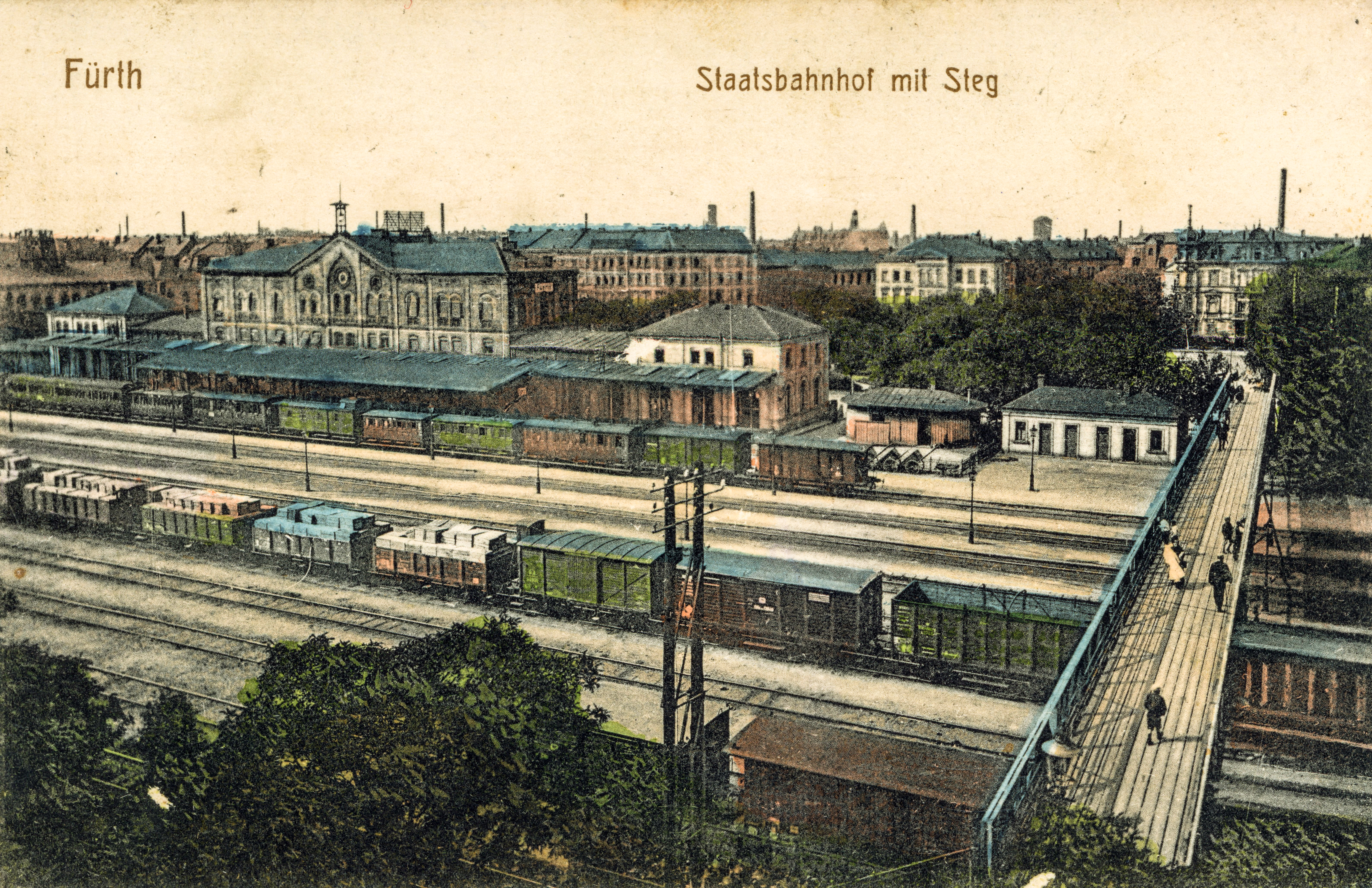 | Datei:AK Staatsbahnhof mit Steg col gel 15 Juni 1915.jpg | |||