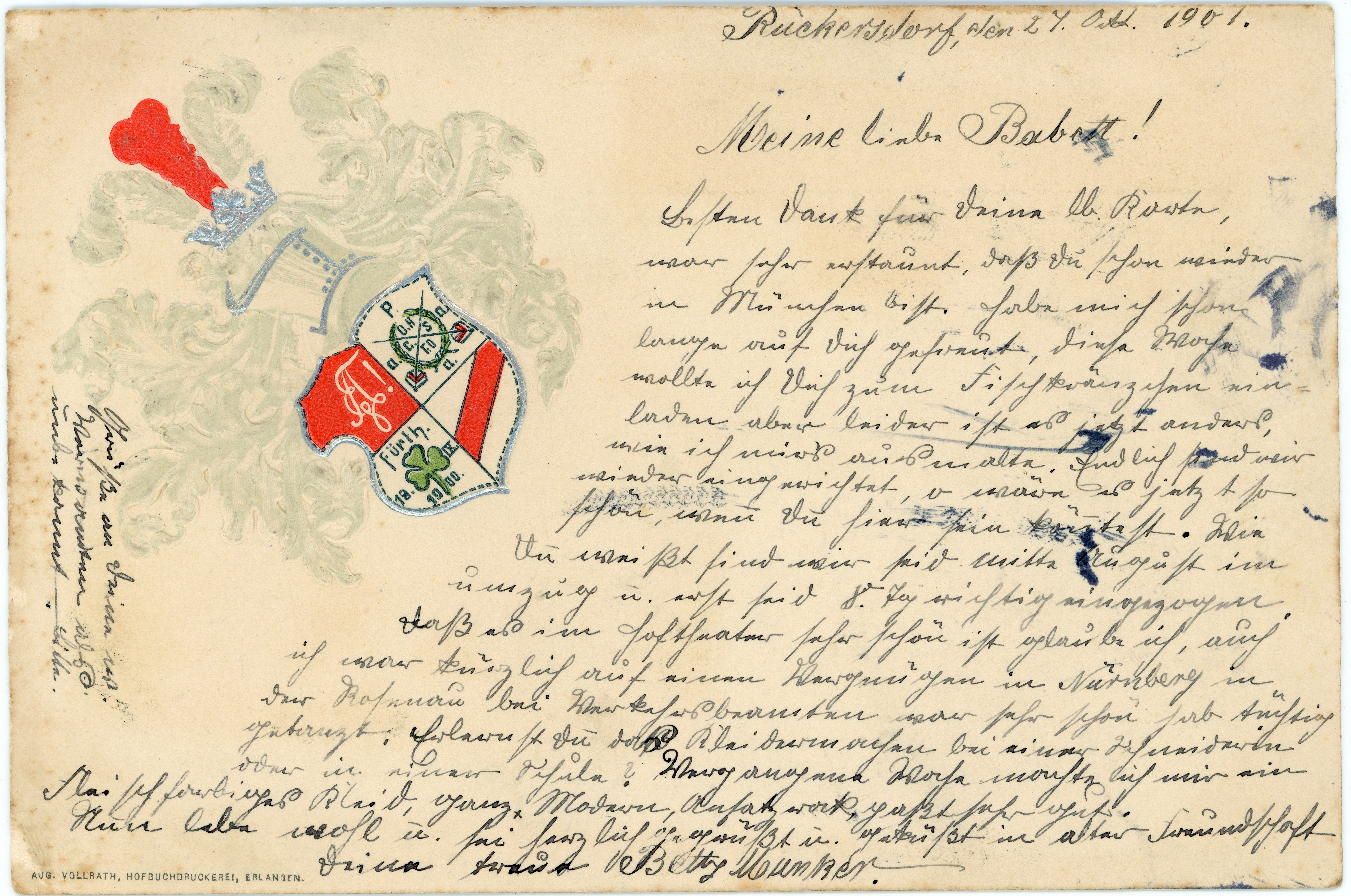 | Beschreibung | Ansichtskarte der Abituria, gel. Okt 1901 | ||