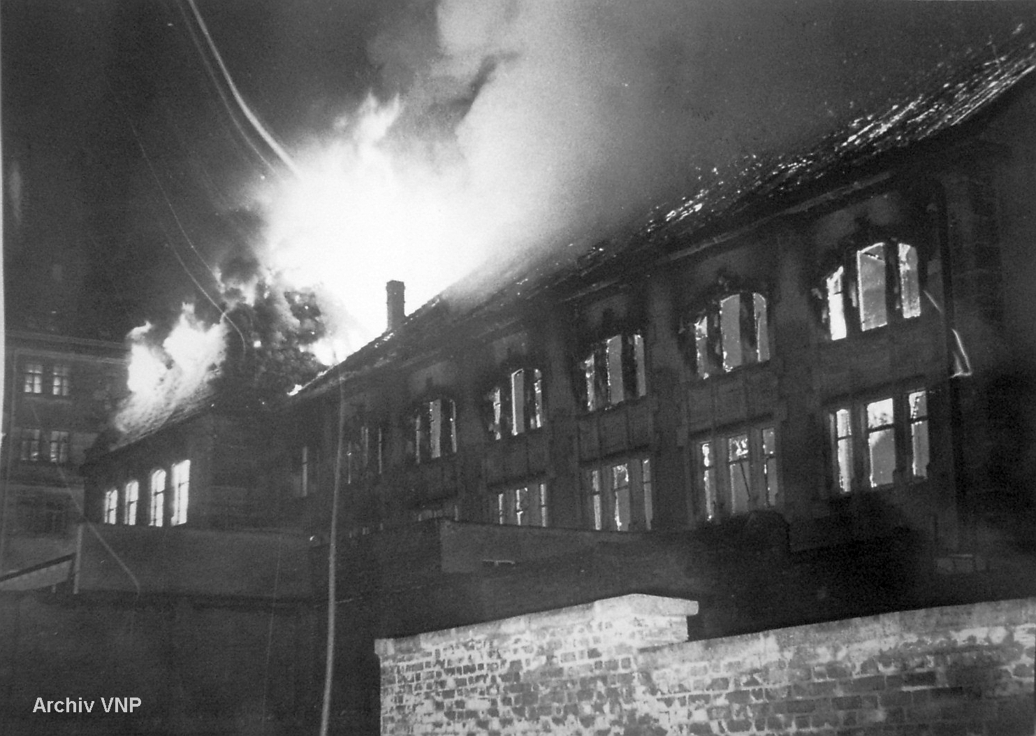 Turnhalle des TV Fürth 1860 während des Brandes am 9. Dezember 1970 in der Turnstraße 10. Lizenz: copyright