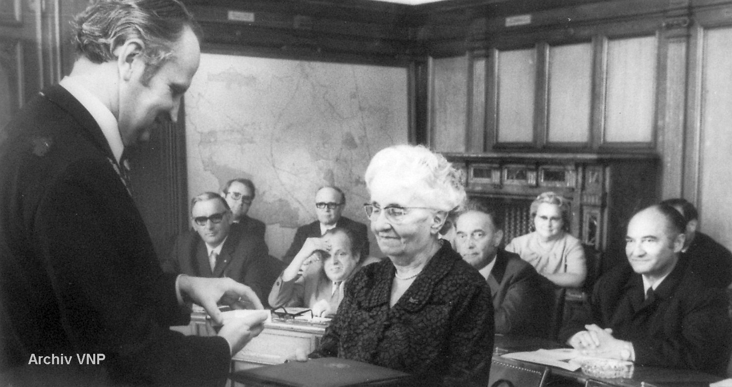 | Dateiinfo (Bild-Unterschrift und Info-Box, automatisch erstellt) | Goldene Bürgermedaille für Dr. Elisabeth Meyer-Spreckels (1972) Lizenz: copyright | ||