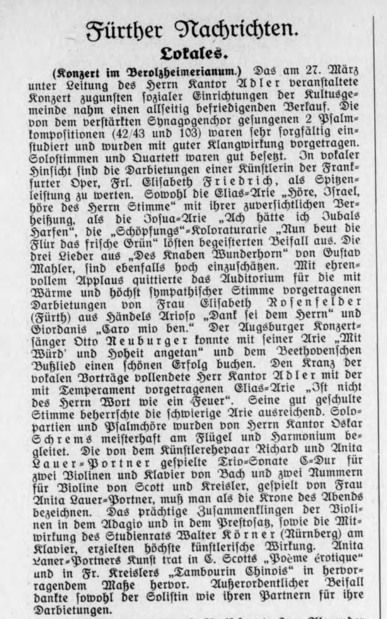 | Beschreibung | Konzert im Berolzheimerianum, Nürnberg-Fürther isr. Gemeindeblatt 1. Mai 1928 | ||