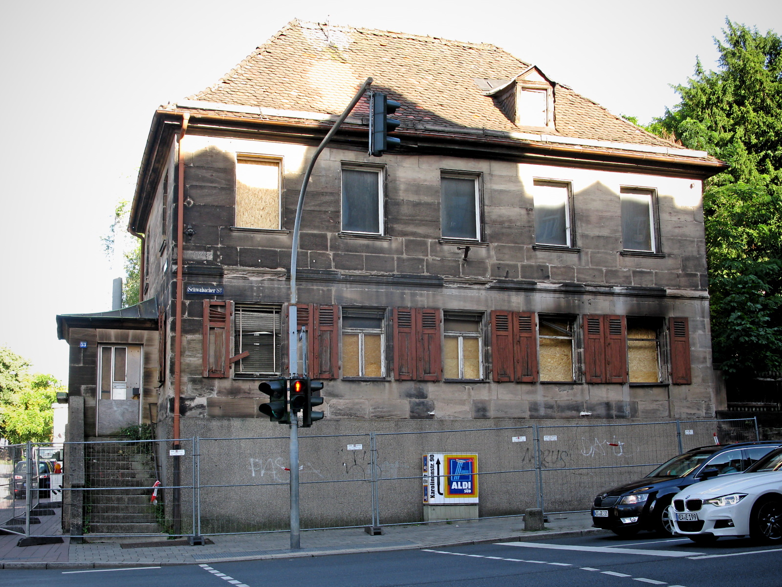 | Beschreibung | Schwabacher Straße 53 („Pechhüttn“), Zustand nach Brand (Juli 2017) | ||