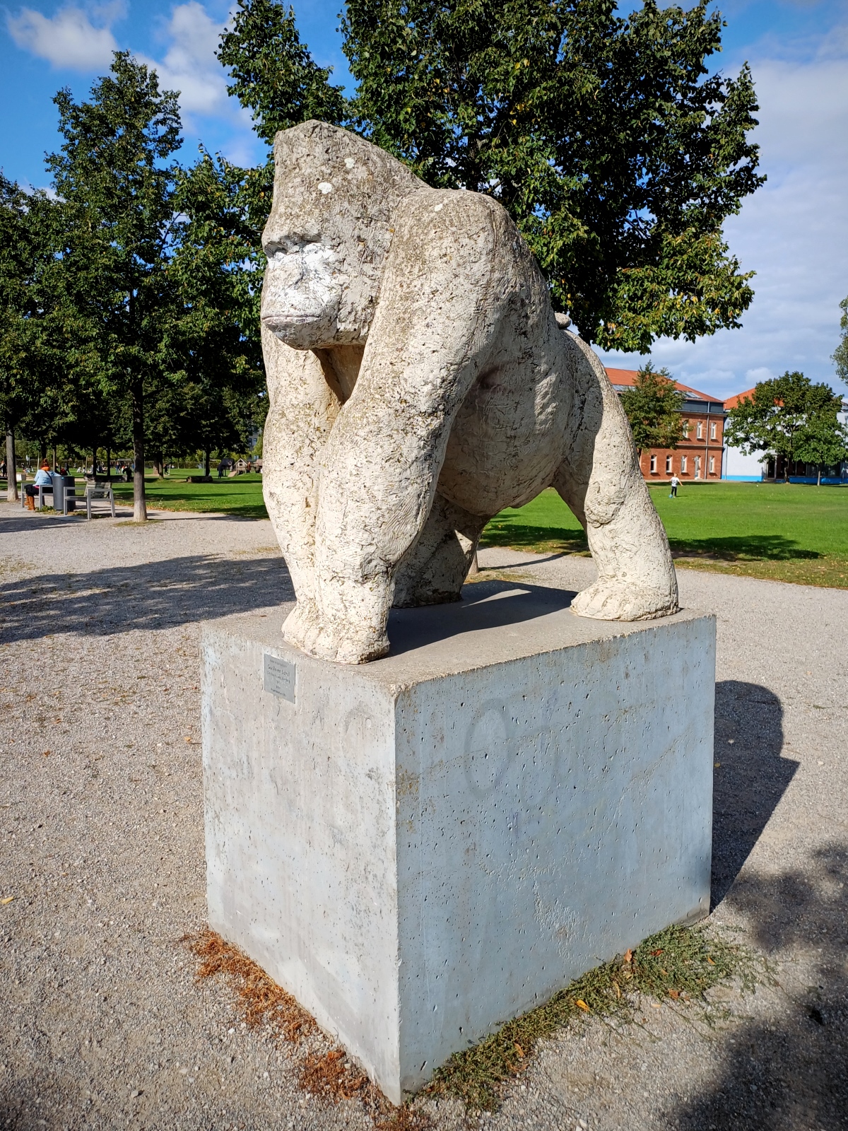 | Beschreibung | Freiplastik „Gorilla mit Sattel“ (Beton) von Christian Rösner im Südstadtpark (September 2024) | ||