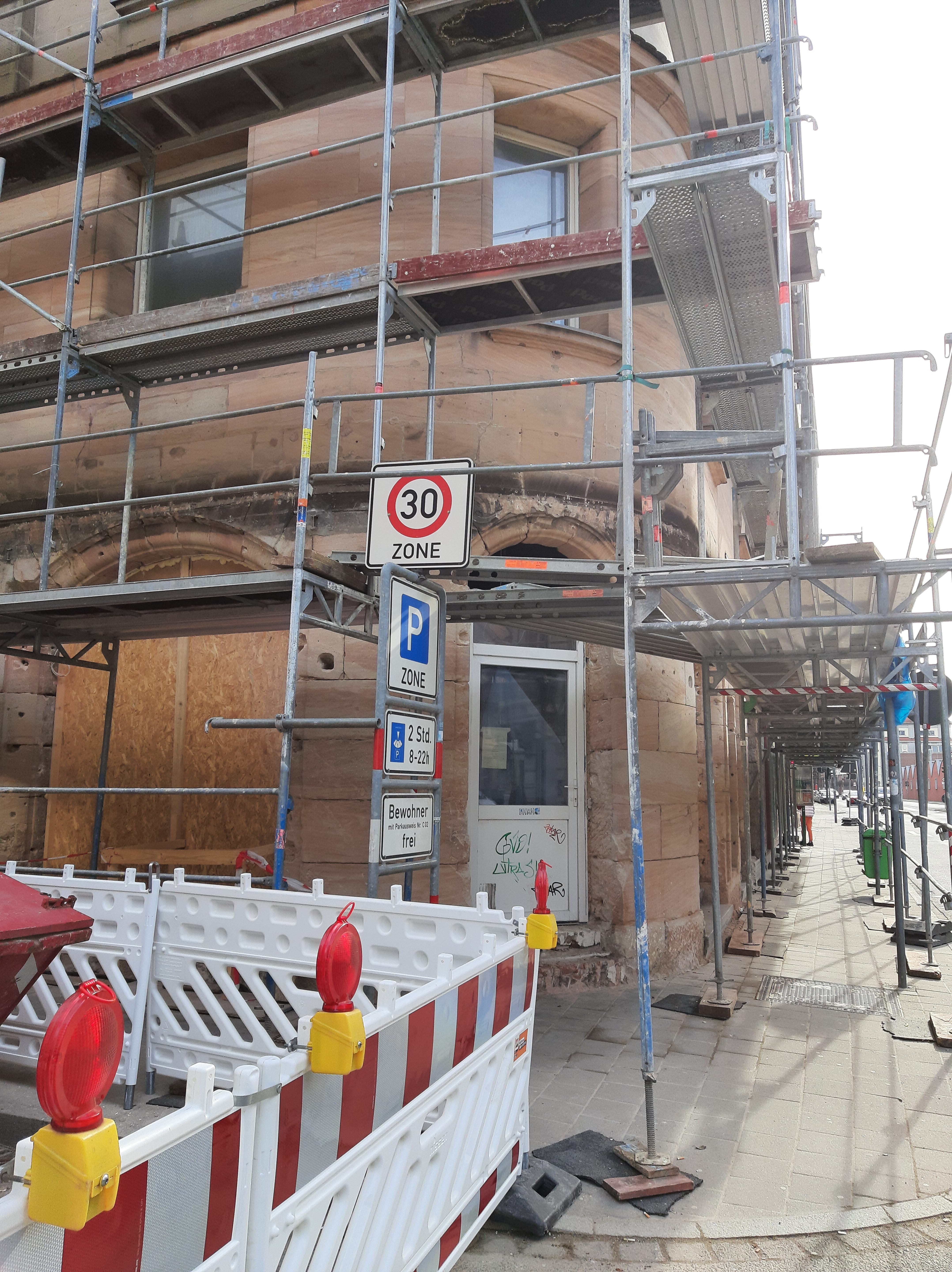 | Beschreibung | Schwabacher Straße 65, Erdgeschoss nach Demontage der Nachkriegs-Fassadenverkleidung, März 2024 | ||