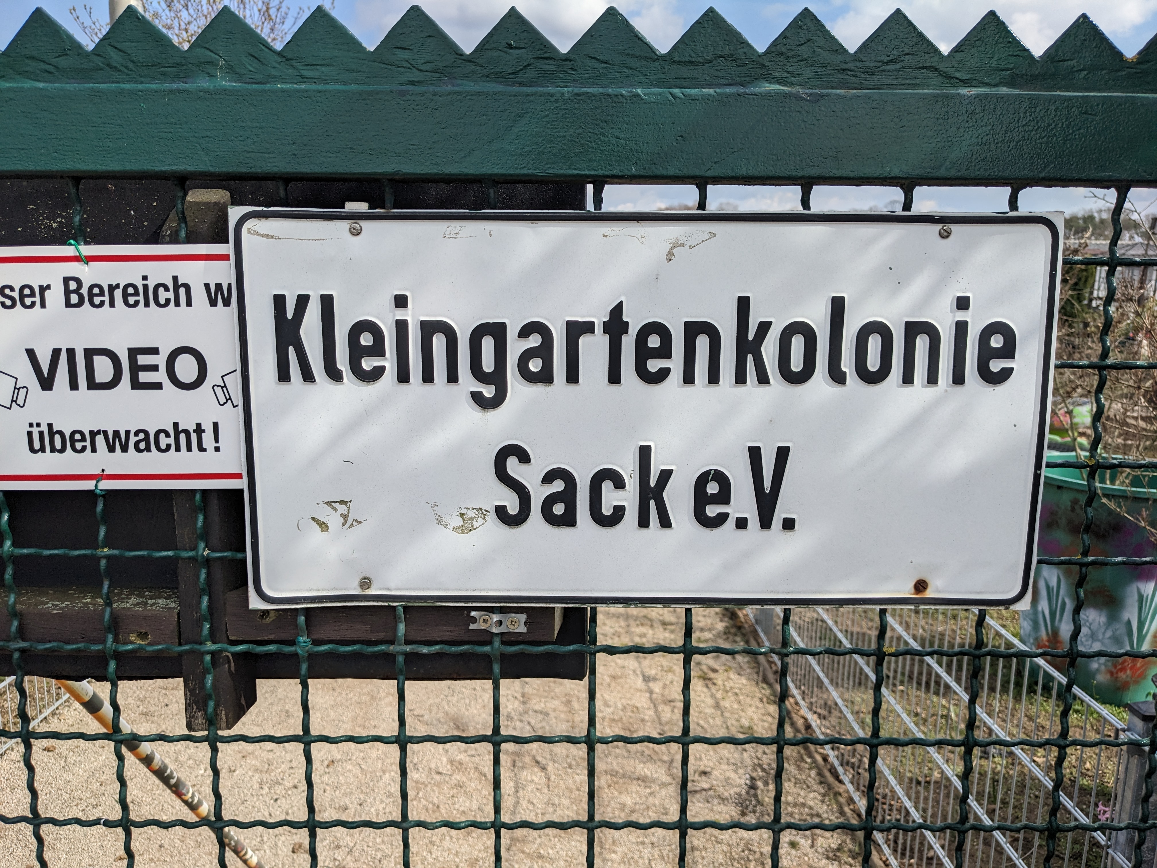 | Beschreibung | Schild der Kleingartenkolonie bei Sack, März 2024 | ||