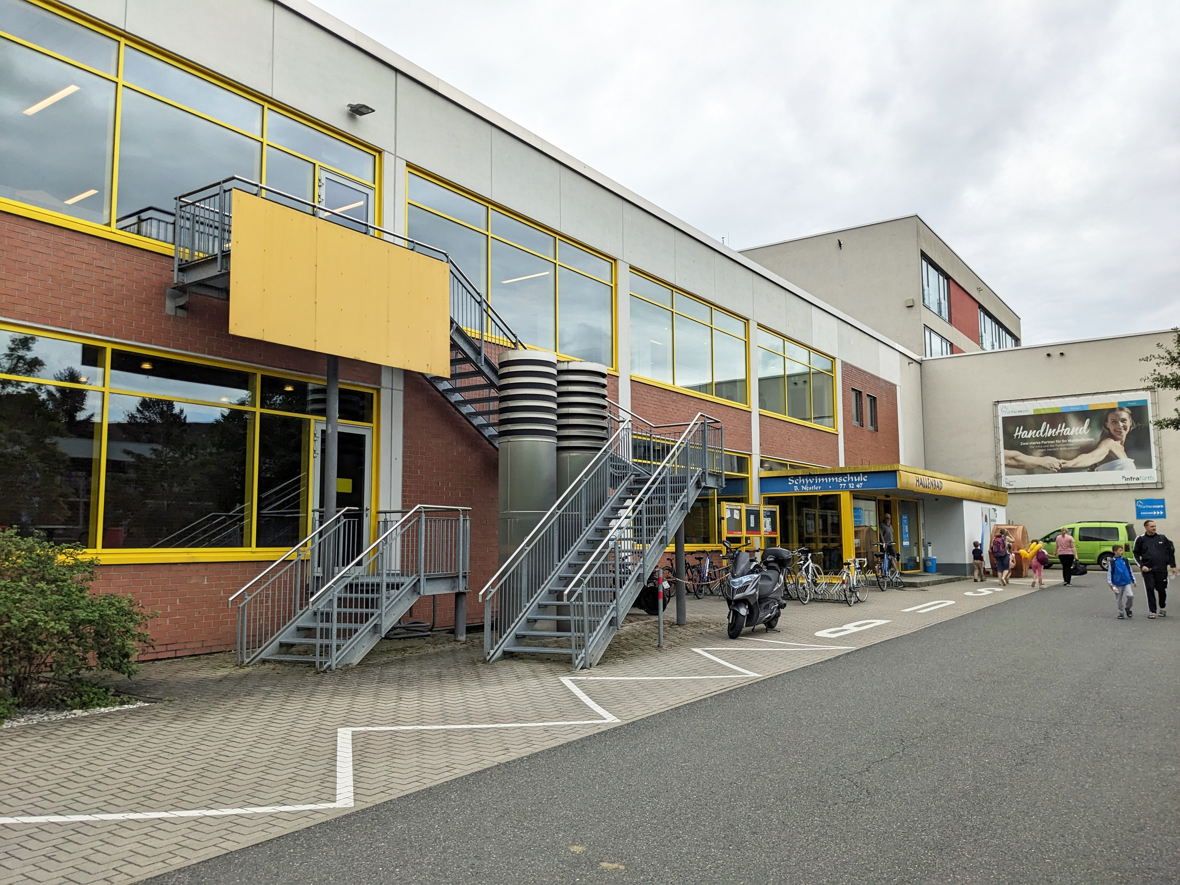 | Beschreibung | Das Hallenbad Fürth am Scherbsgraben, Juli 2024 | ||