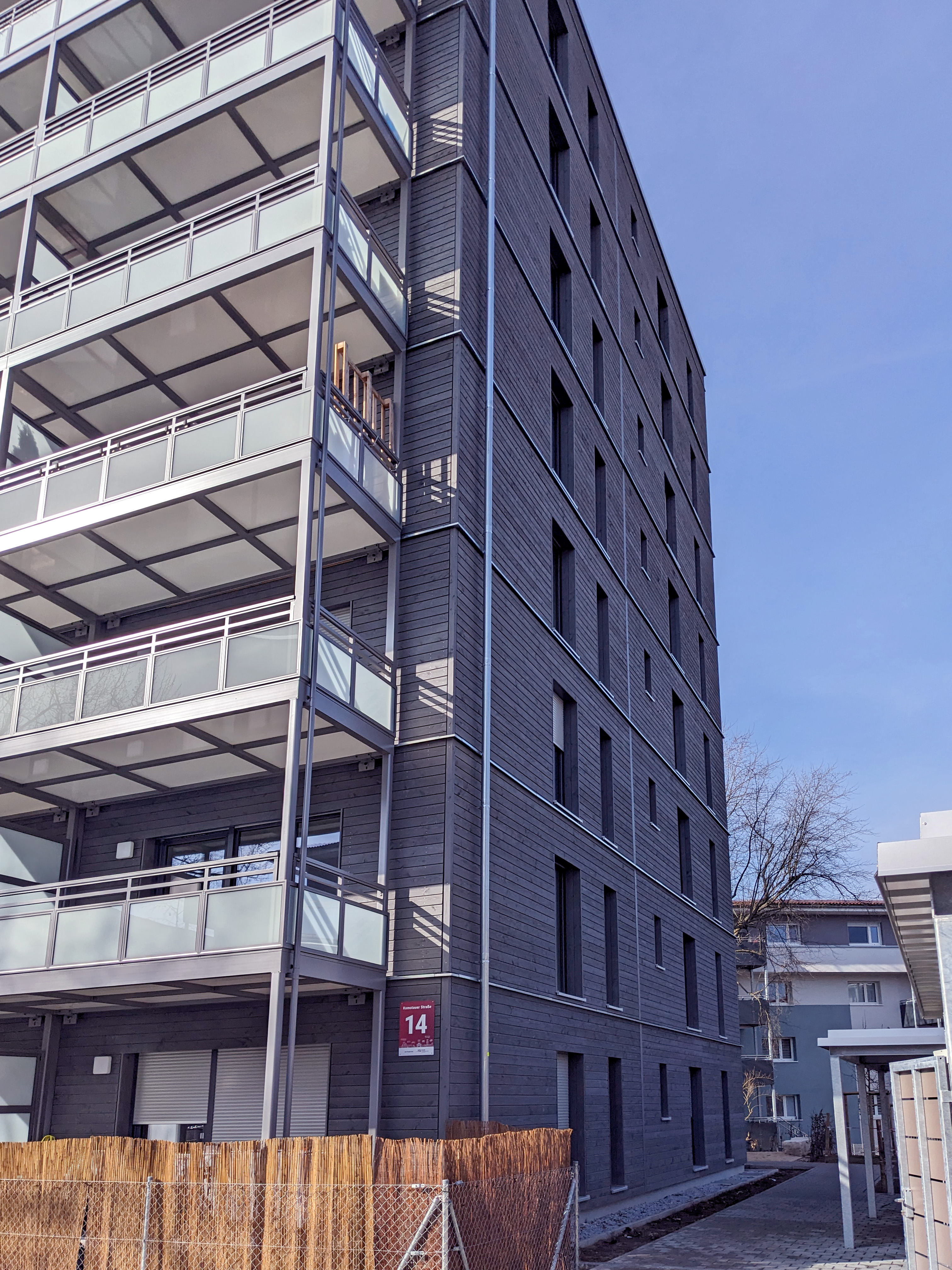 | Beschreibung | Das Holzhybrid-Haus in der Komotauer Straße 14 auf der Hardhöhe, Februar 2025 | ||