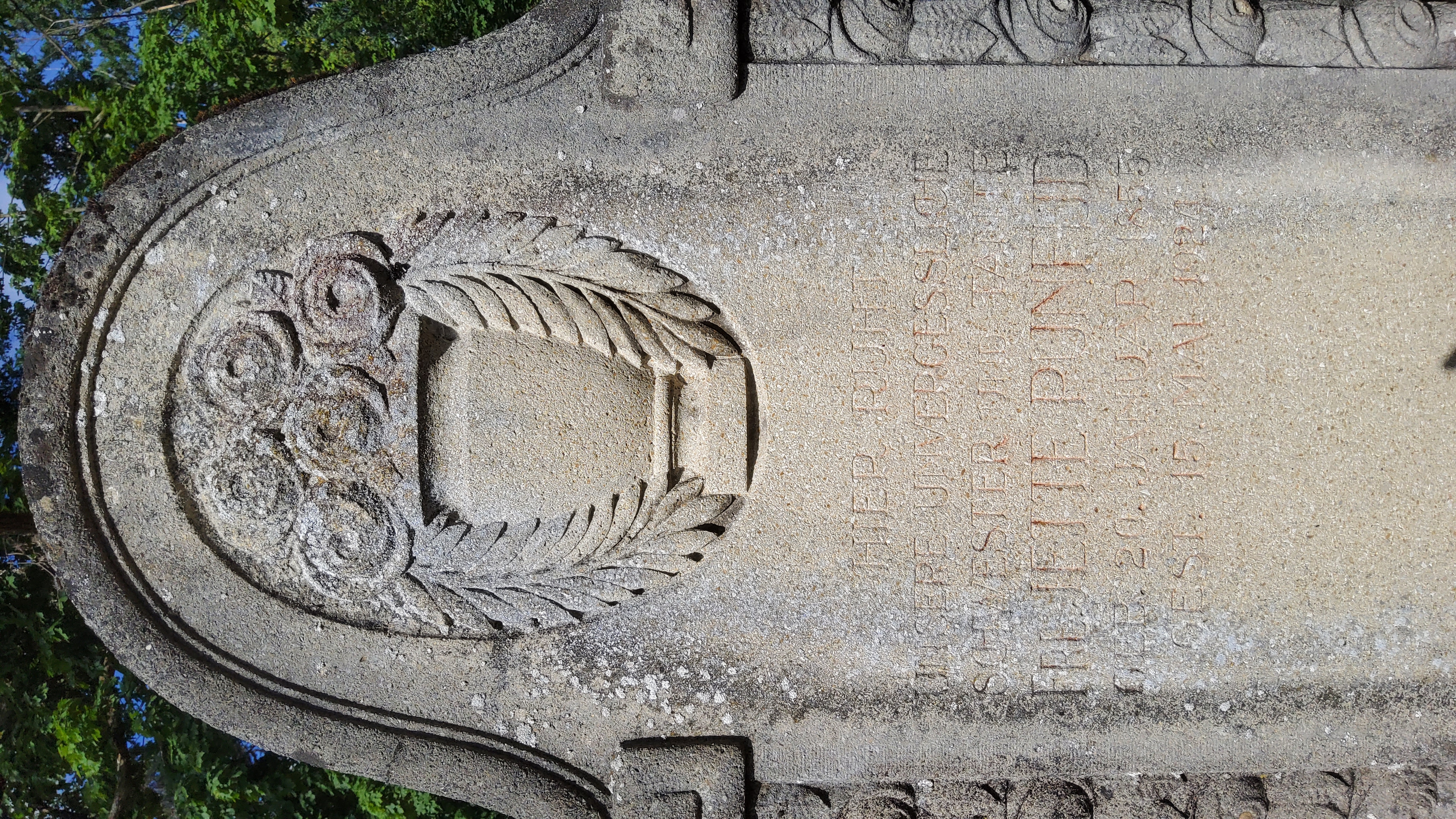 | Beschreibung | Detail von Grabstein Jette Punfud mit Inschrift: HIER RUHT | ||