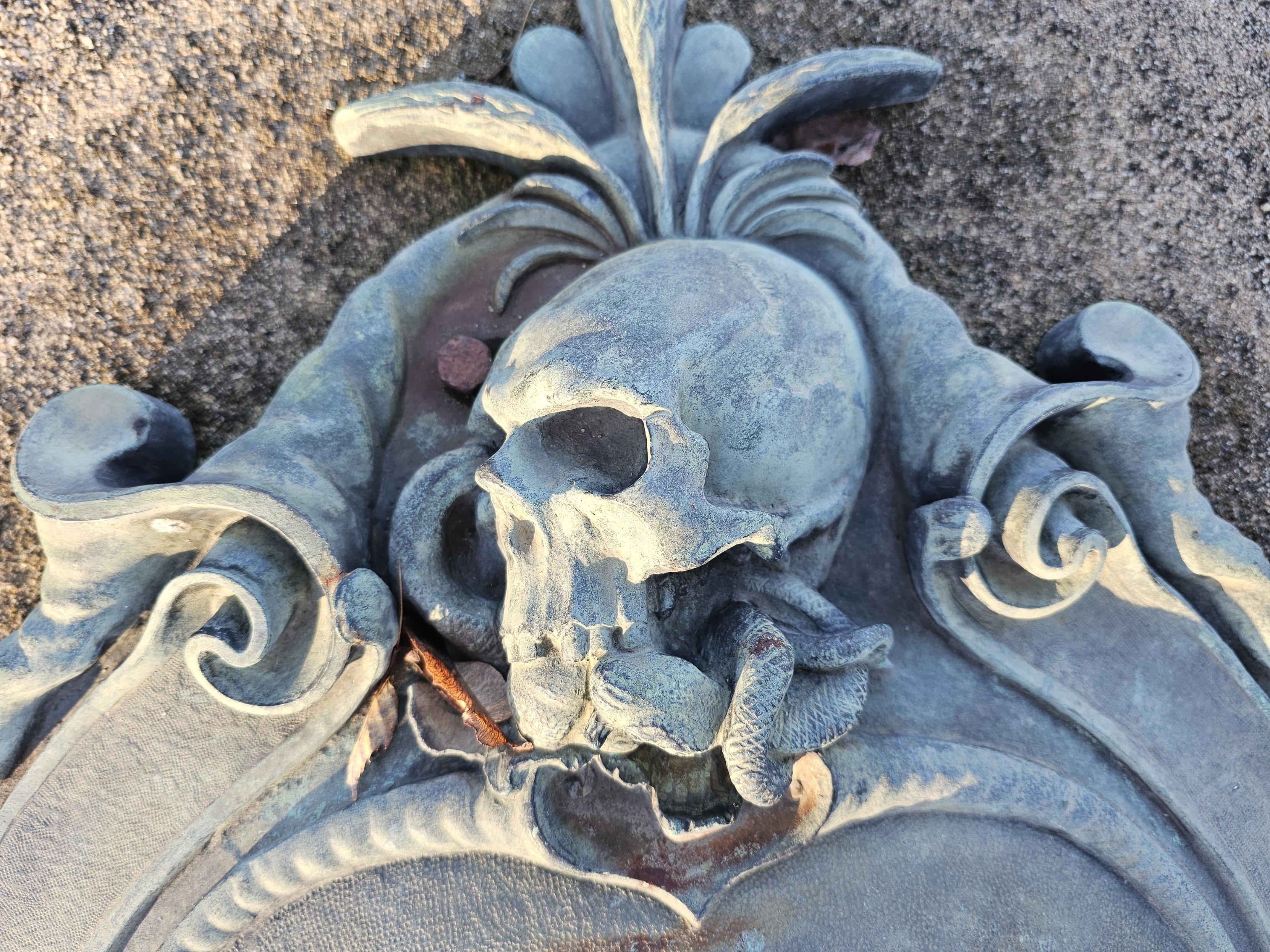 Schlange um einen Schädel auf einem Grabmal des Städtischen Friedhofs Fürth, Dezember 2025 Urheber: LadyJ<br><br>Lizenz: copyright