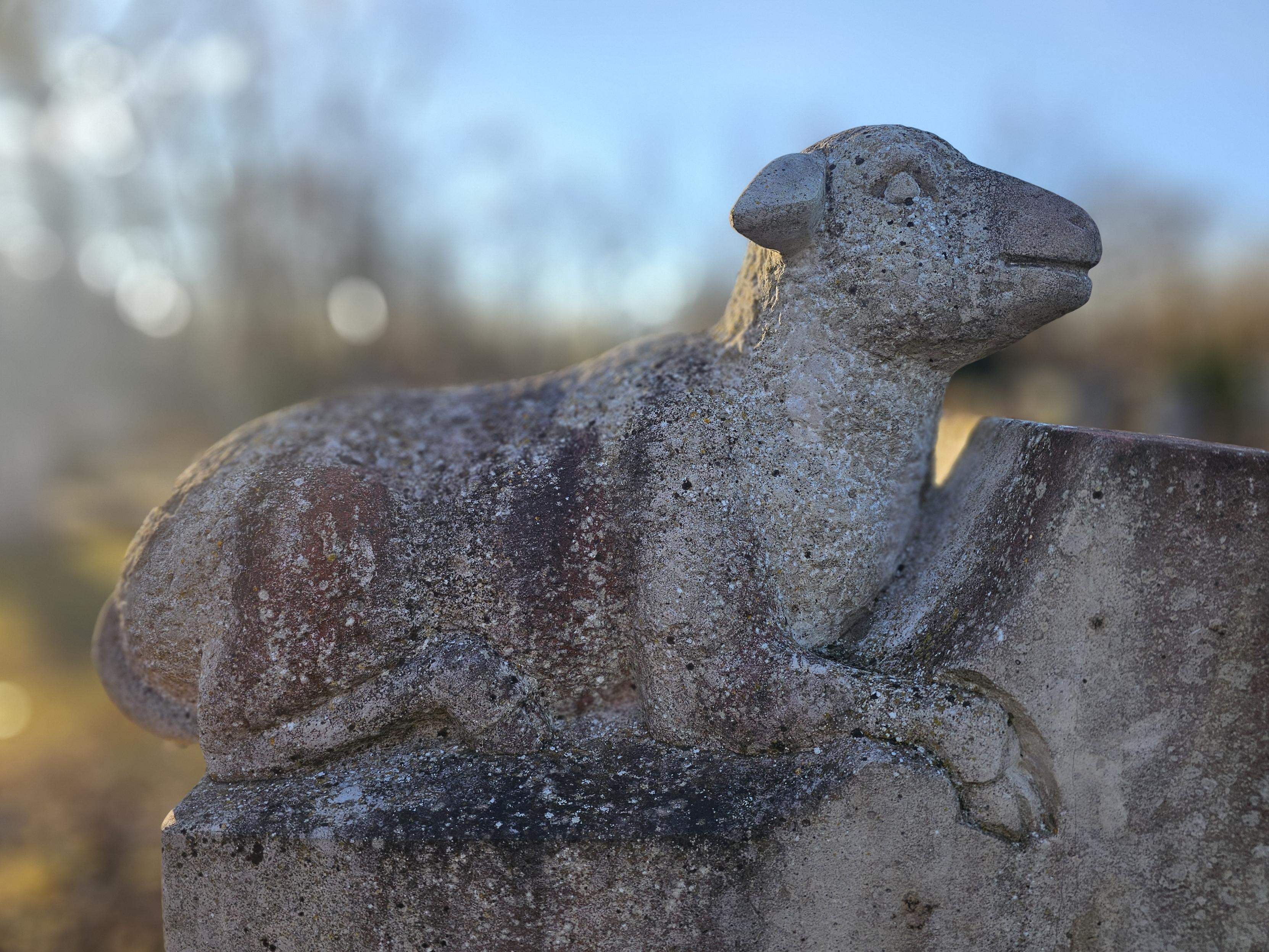 | Beschreibung | Lamm auf einem Grabmal des Städtischen Friedhofs Fürth, Dezember 2025 | ||