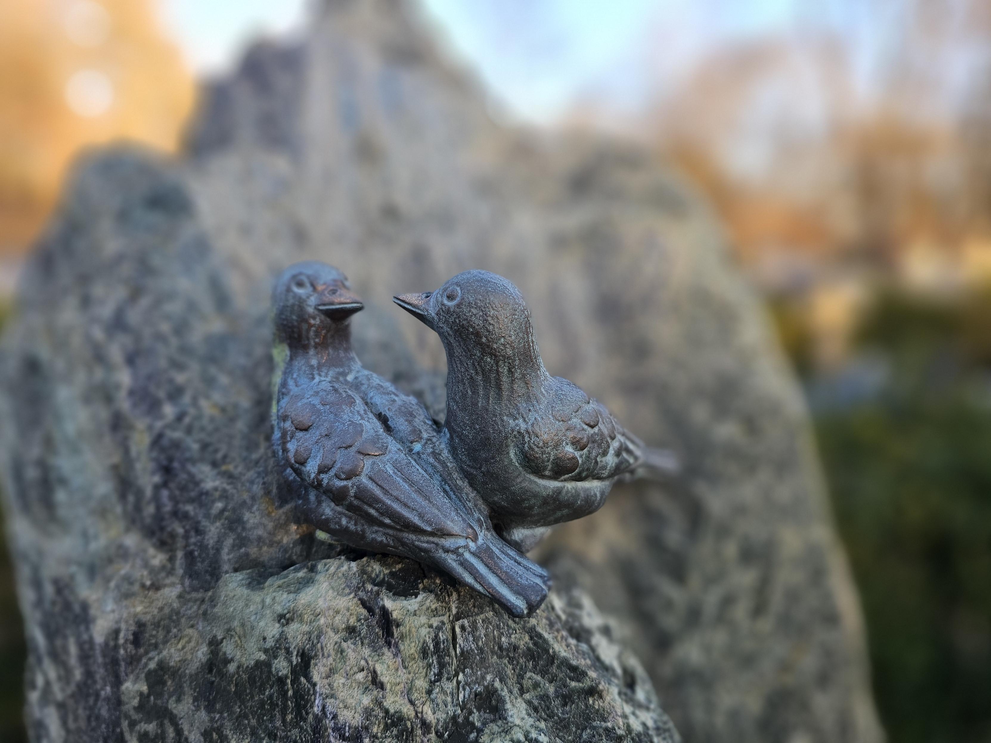 Vogelpaar auf einem Grabmal des Städtischen Friedhofs Fürth, Dezember 2025 Urheber: LadyJ<br><br>Lizenz: copyright