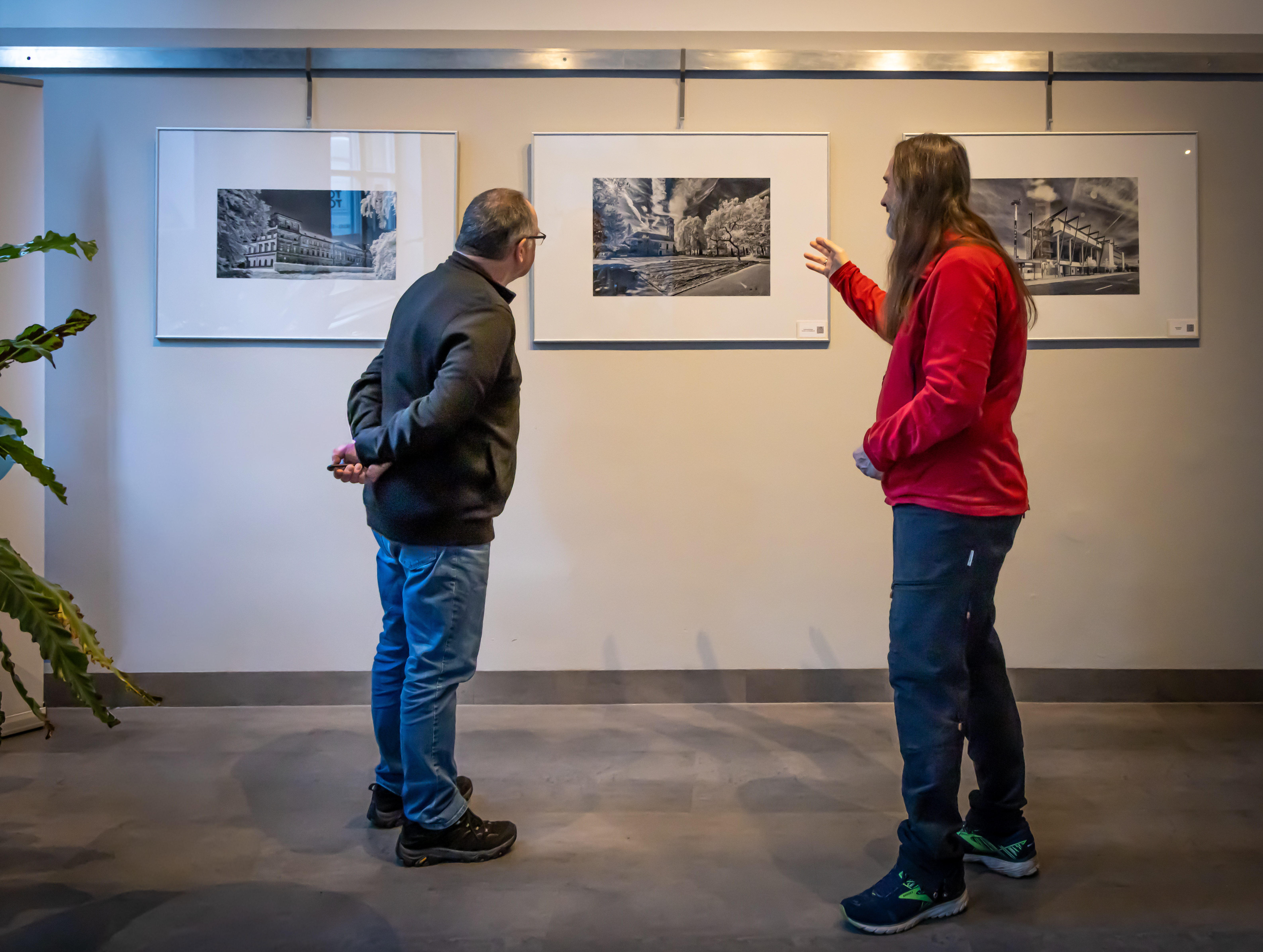 BeschreibungClaus Schönberger (rechst) in seiner Ausstellung "Fürth in Infrarot" der Volkshochschule Fürth im Januar/Februar 2026.
