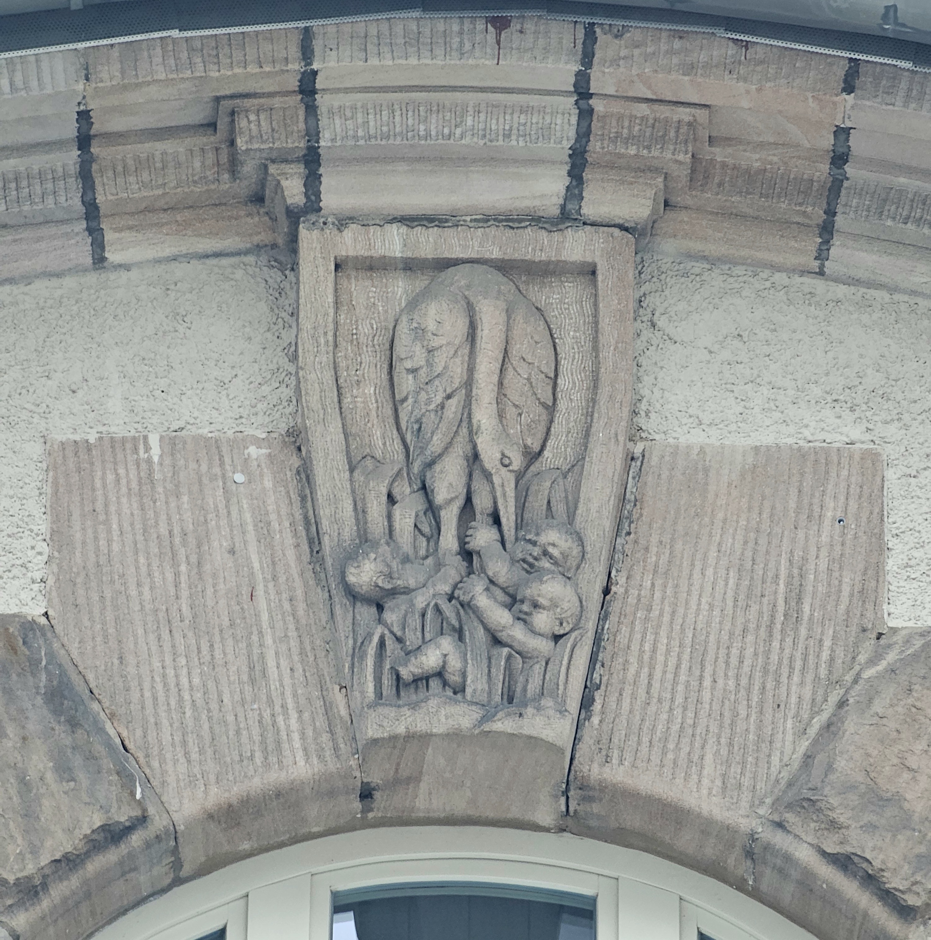 Relief an der Stirnseite des Nathanstifts in der Sigmund-Nathan-Straße , Januar 2026 Urheber: LadyJ<br><br>Lizenz: copyright