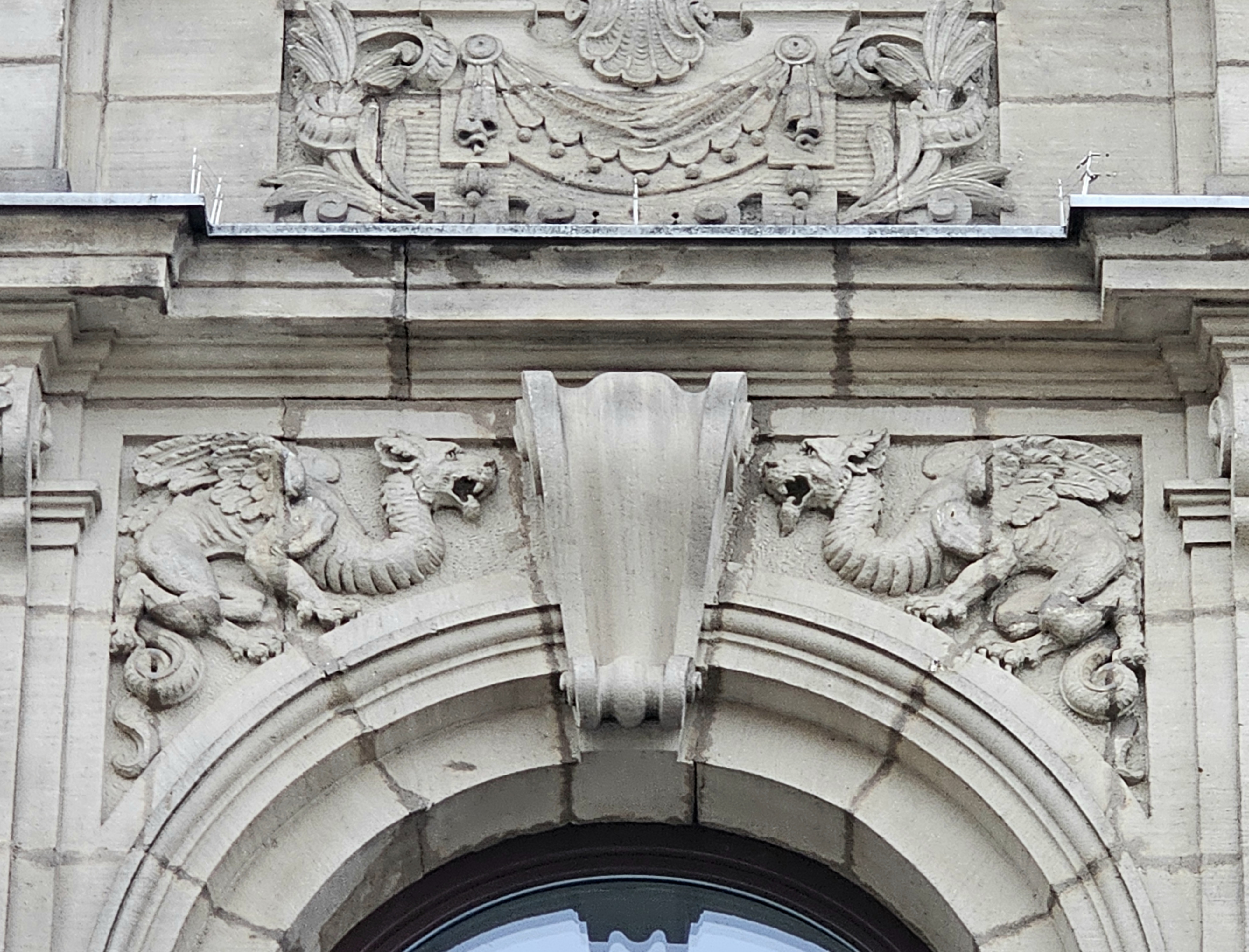 | Beschreibung | Detail der Fassade des Gebäudes am Obstmarkt 1, Februar 2026 | ||