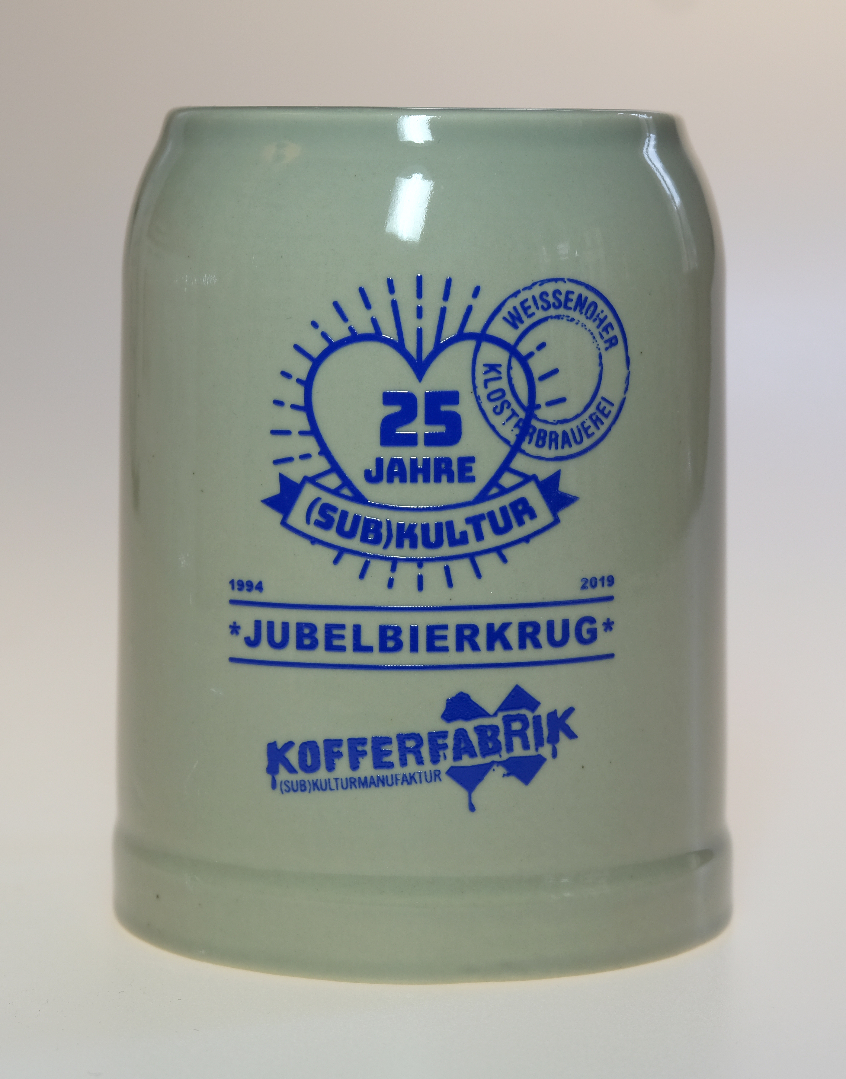 | Beschreibung | Jubiläumskrug der Kofferfabrik anlässlich des 25-jährigen Bestehens, 2021 | ||