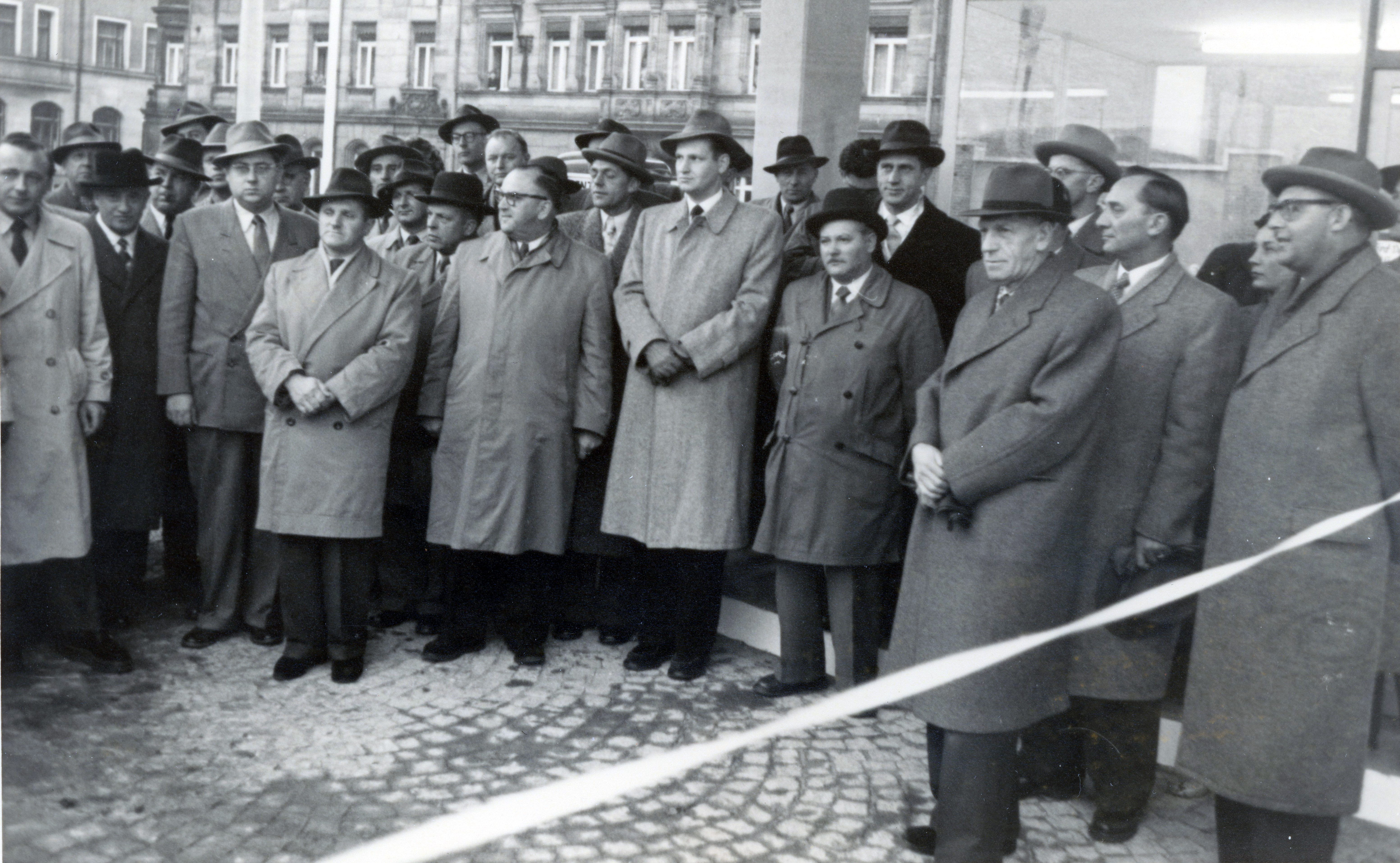 | Beschreibung | Eröffnung der Tankstelle und Autowerkstatt in der Nürnberger Straße 126 mit prominenten Gästen, ca. 1950 | ||