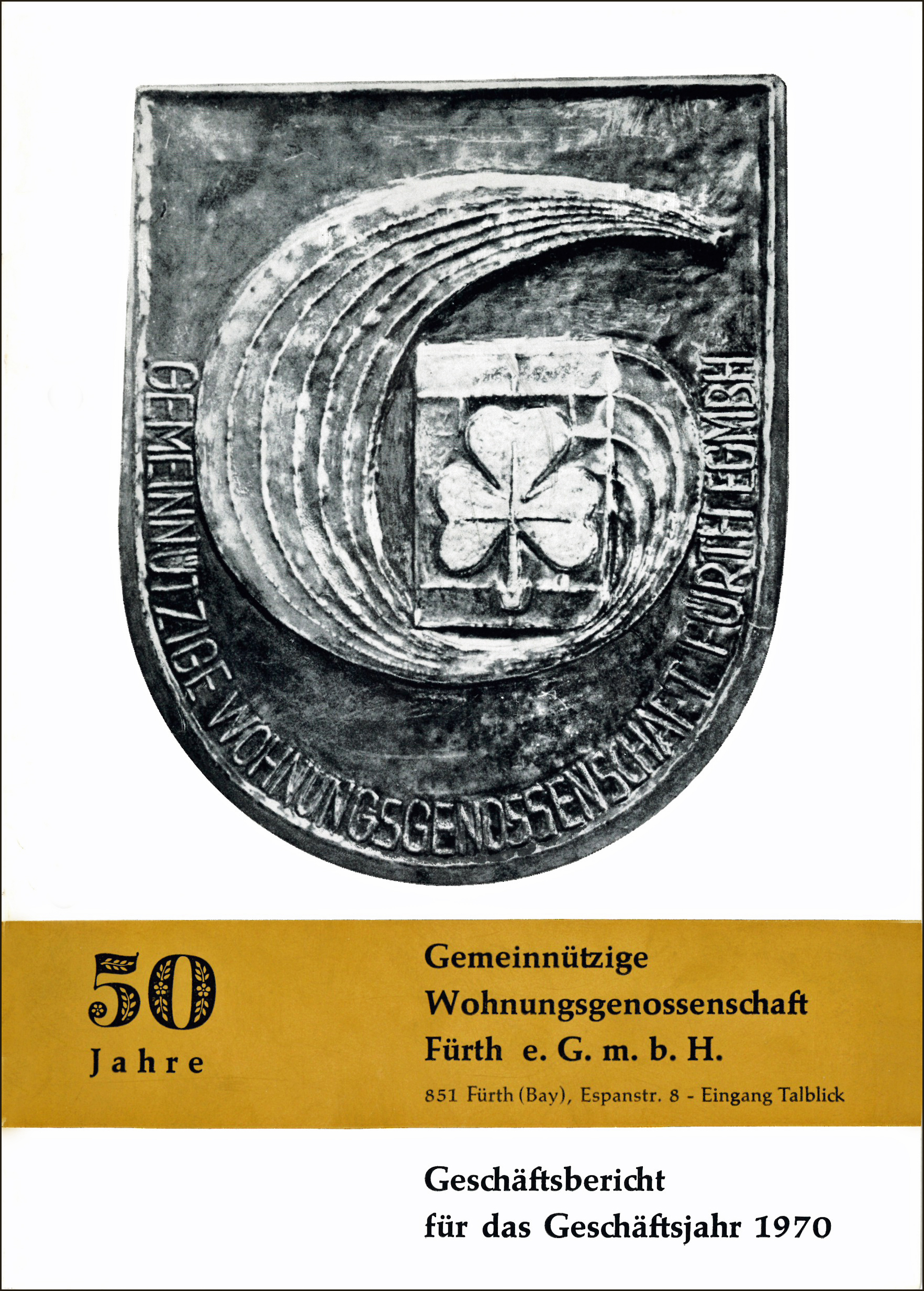 | Beschreibung | Geschäftsbericht zum 50jährigen Jubiläum der Gemeinnützigen Wohnungsgenossenschaft Fürth, 1970 | ||