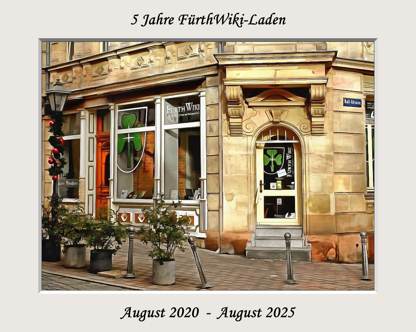 Künstlerischer Eindruck des FürthWiki-Ladens zum 5-jährigen Bestehen Urheber: Ralph Stenzel<br>Erstellungsdatum: 6. Mai 2025<br>Lizenz: CC-BY-SA-4.0