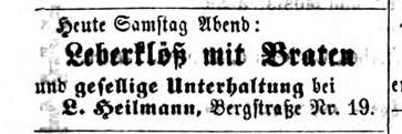 | Beschreibung | Heilmann-Anzeige "Leberklöß mit Braten", 25.3.1871 | ||