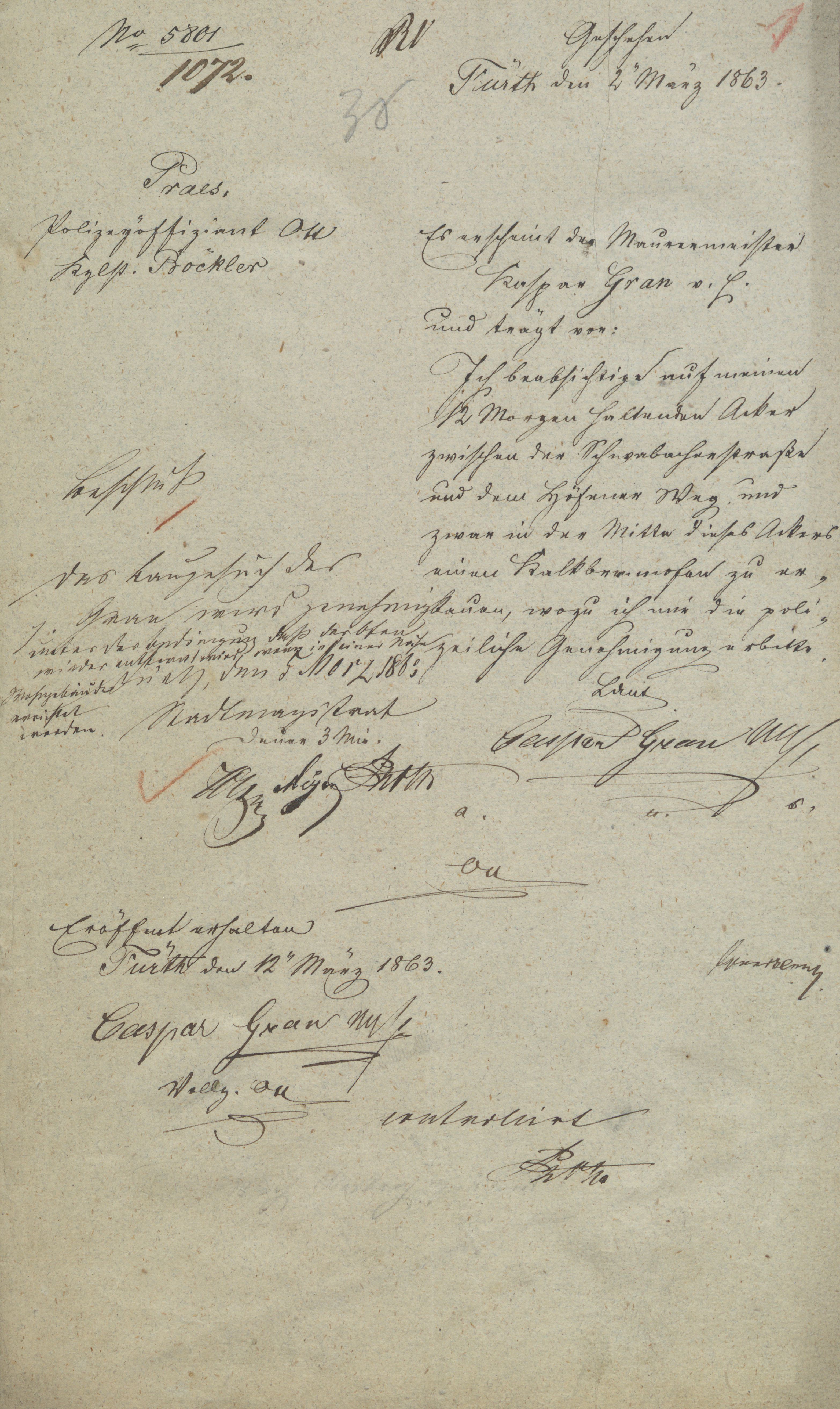 Antrag und Beschluss zum Bau des Kalkbrennofens vom März 1863; Veröffentlichungsgenehmigung durch das Stadtarchiv Fürth vom 25.09.2019