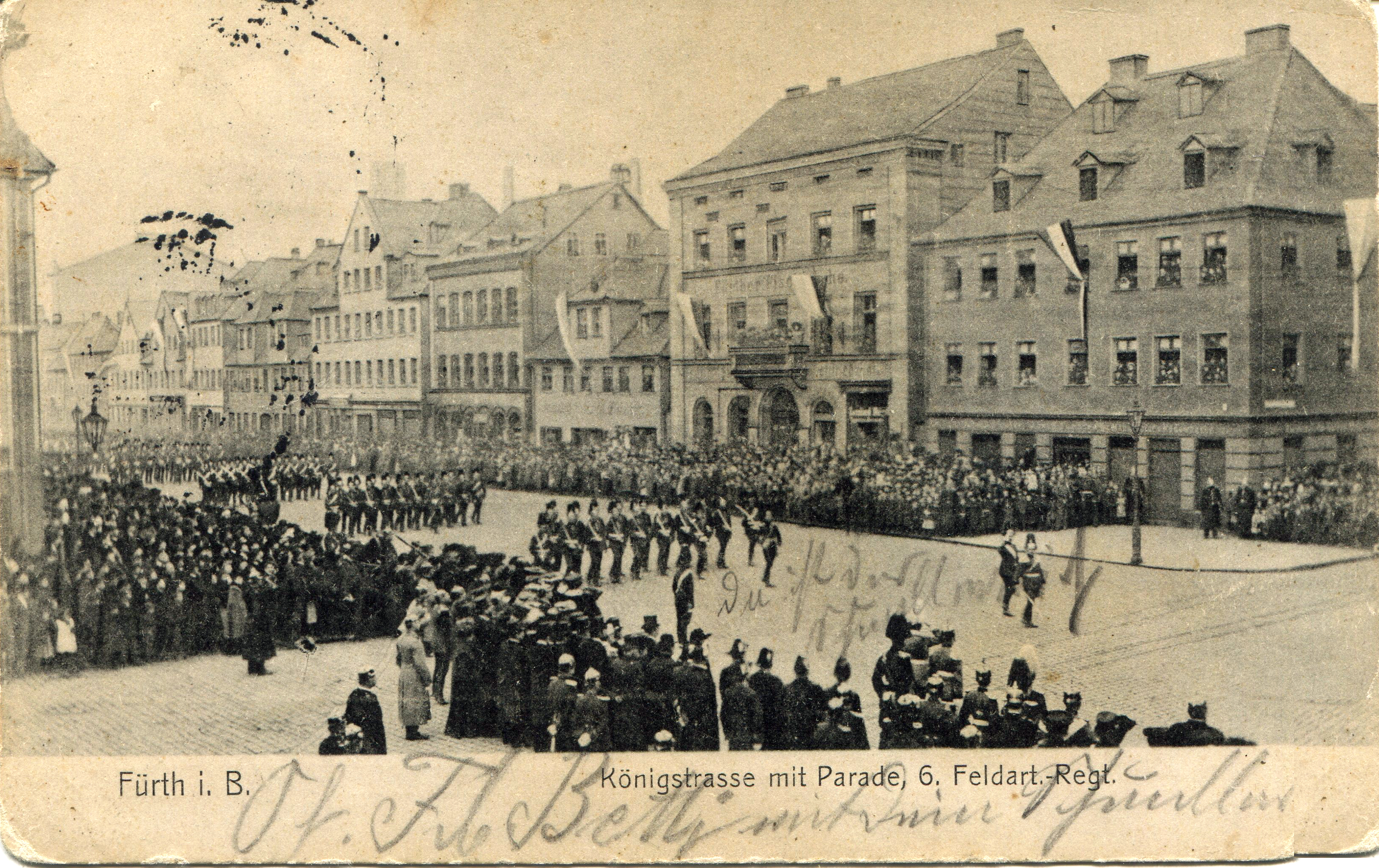 | Beschreibung | Parade des 6. Feldartillerie-Regiments in der Königstraße anlässlich des 89. Geburtstags Prinzregent Luitpolds, gel. 1910 | ||